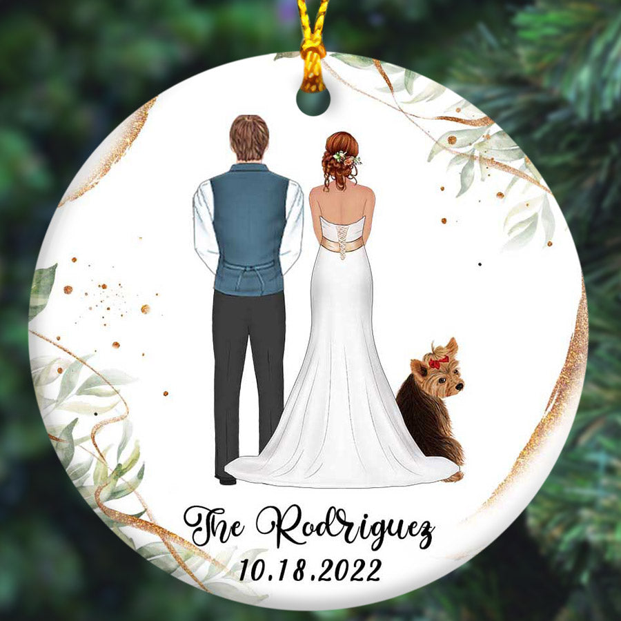 Wedding Gift Ornaments | Bride And Groom Ornaments | Ceramic Personalized Ornaments | Wedding Dog Ornament