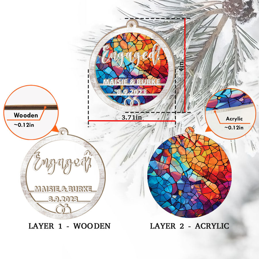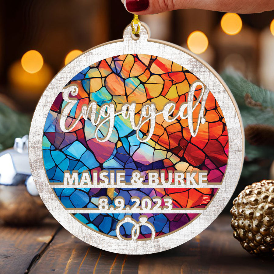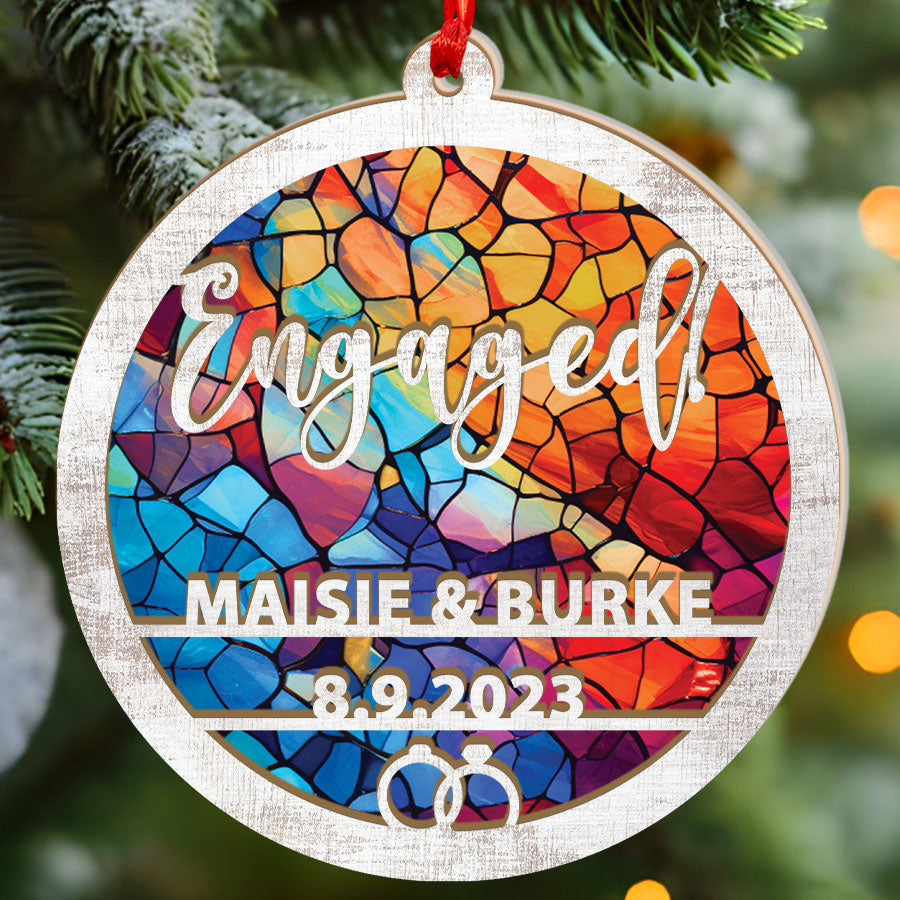 The engagement ornaments | suncatcher ornament add a feeling of warmth, joy, and magic to any window. As the sun streams through during the day, a kaleidoscope of colors is cast all around. Reds, oranges, yellows, and more will dance on your walls and brighten up even the dreariest of days.