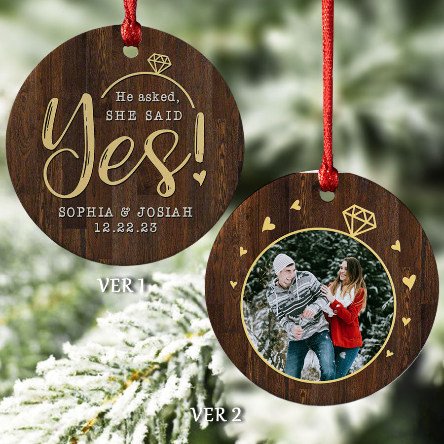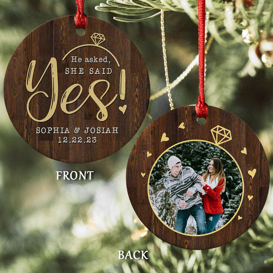 Mark your exciting new chapter with a meaningful keepsake. The engagement photo ornament | she said yes ornament lets you showcase your joy whenever you view your tree. Engagement Ornaments create lasting memories of your special day. Display them on your Christmas tree every year to remember the beginning of the forever love story with the wonderful Personalized Christmas Ornaments.