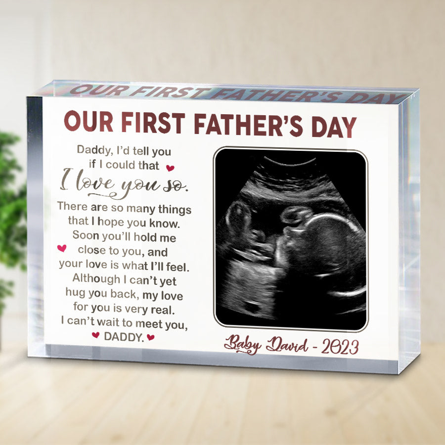 This Father's Day, expecting dad gifts | ultrasound photo blocks acrylic this acrylic block to show him how much the life lessons he taught you mean. This first fathers day gift represents all the ways he carved out space for you to become who you were meant to be. Watch his eyes light up as he realizes this block speaks volumes about the impact he has made.