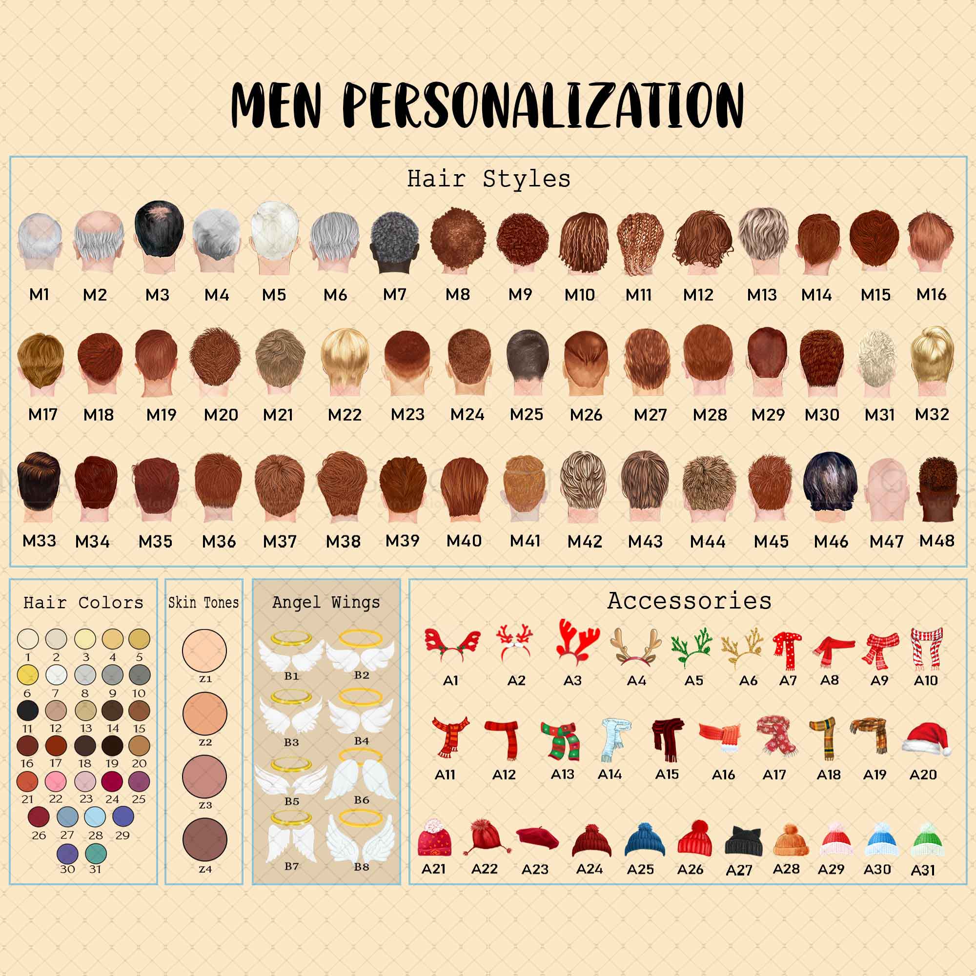 You can select different hairstyles, outfits, and accessories for each member of the snowman family when you purchase our ornament. Include your dogs in the design to give it a fun spin.
