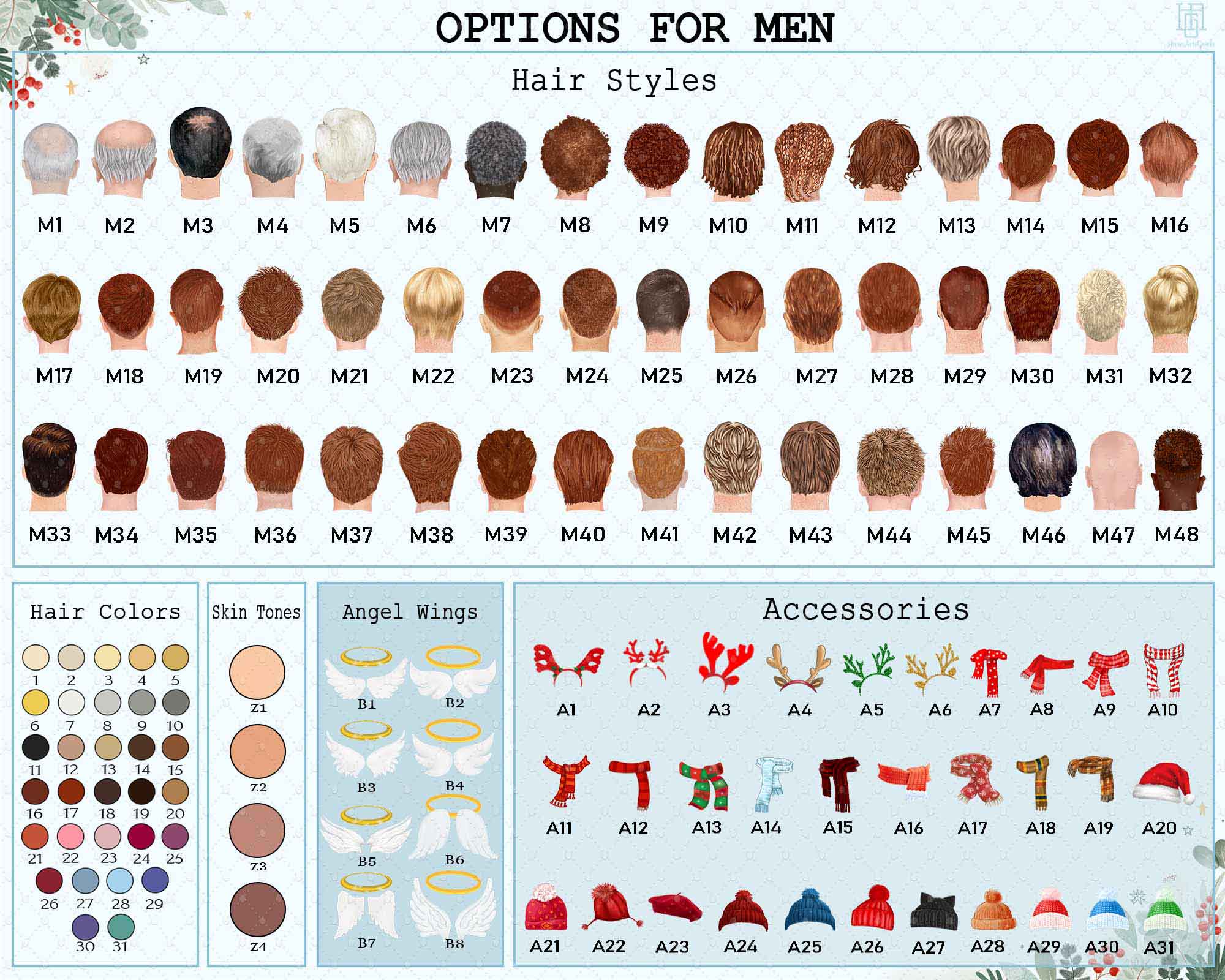 With options for hair models, clothing, accessories, and more, there are countless ways to customize your family and pet ornaments. Adding family names or special dates such as a marriage or birth further adds to the personal touch. And with the option for clipart, the sky is the limit in terms of design possibilities.