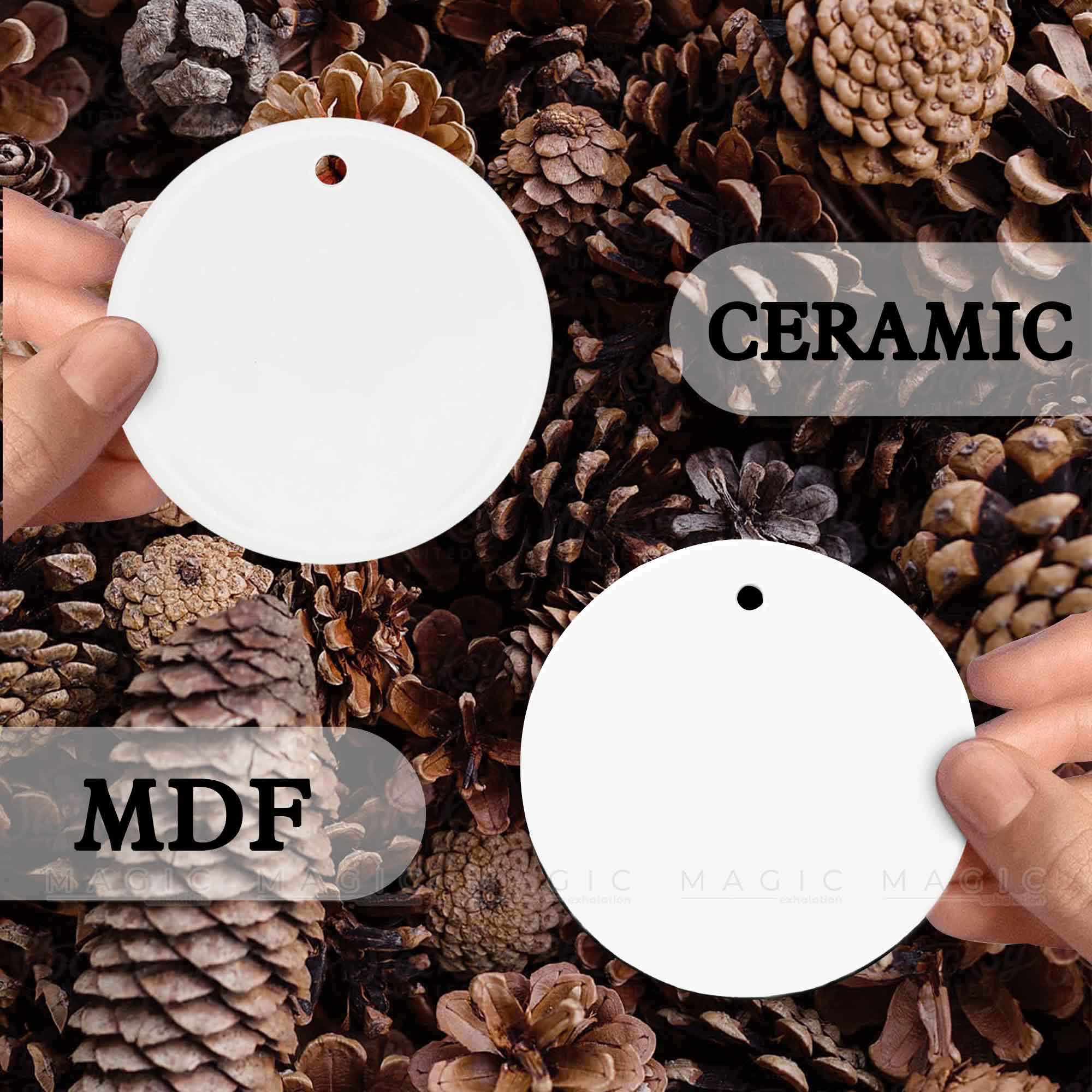 Our ornaments are made of two different sorts of materials: ceramic and high-gloss MDF.