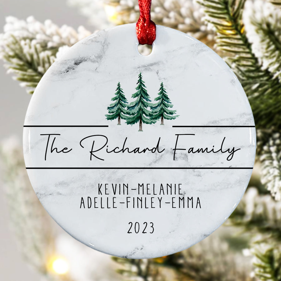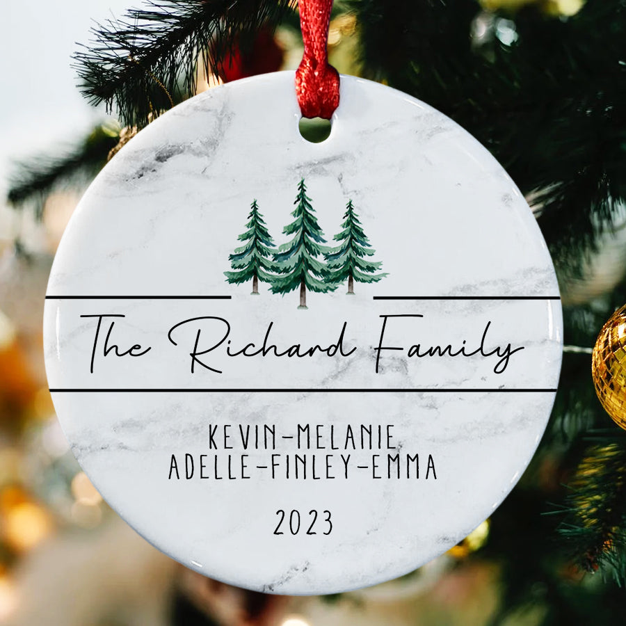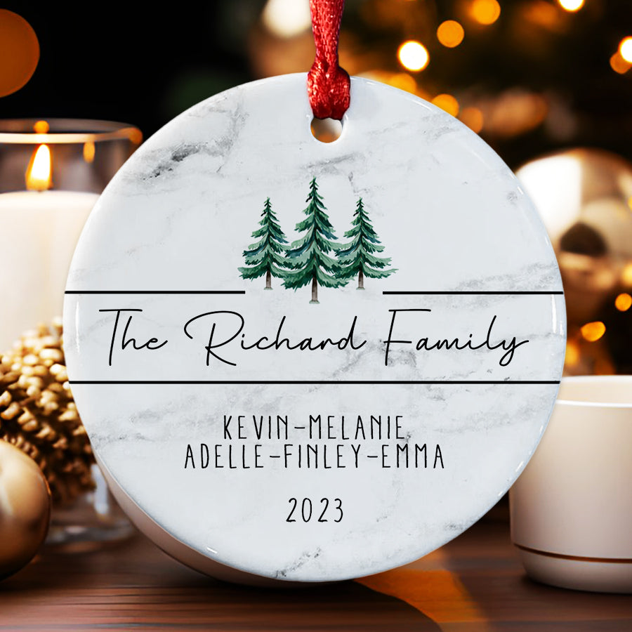 Make cherished family memories last forever with meaningful family name christmas ornaments | custom family ornaments. Buy now and choose a design that represents your family's unique bond - a treasured keepsake to be passed down for generations to come.