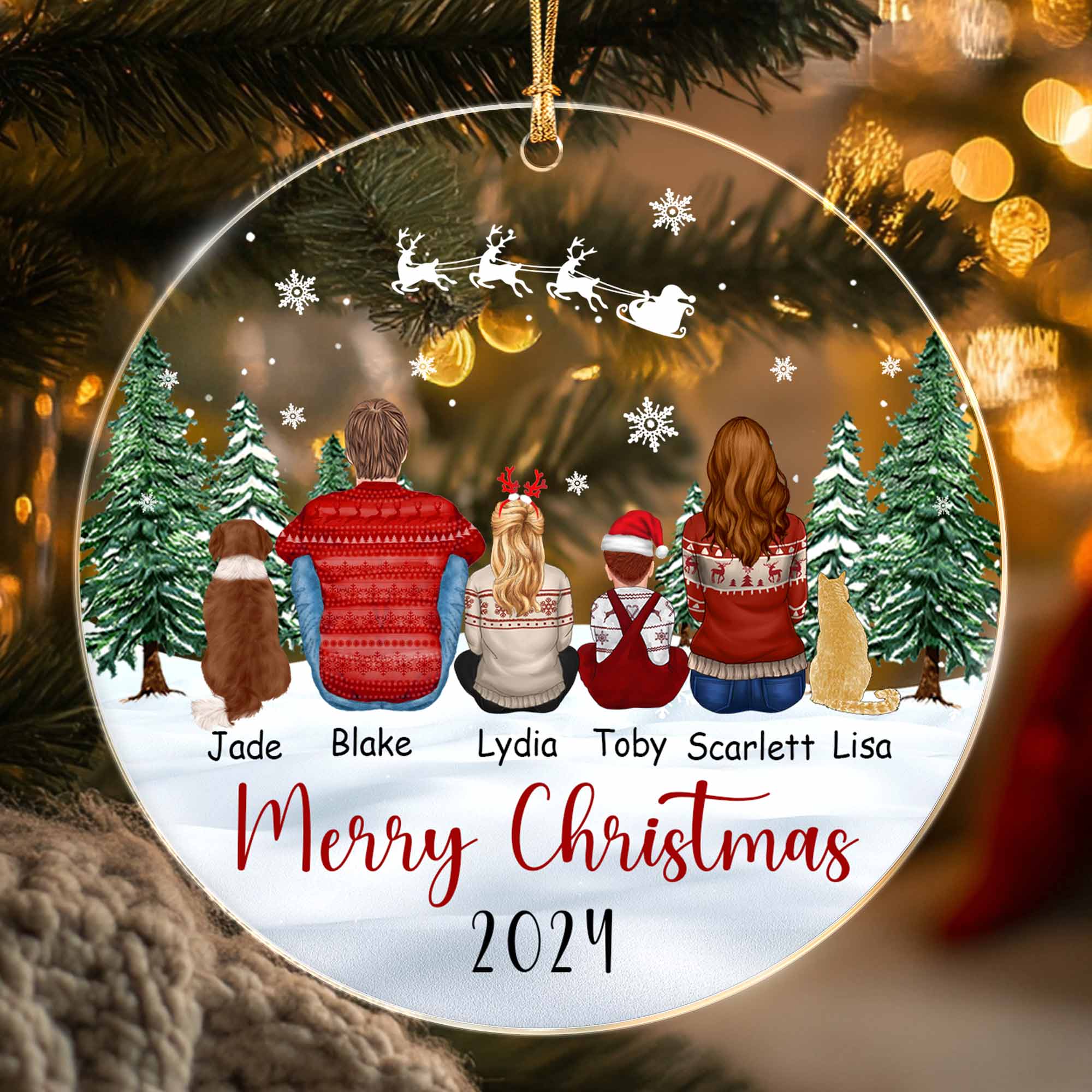Looking to add warmth and joy to your home or surprise a loved one? Discover the family of 4 ornament with 2 dogs ornament | custom family ornament with dog—the perfect gift for pet lovers!