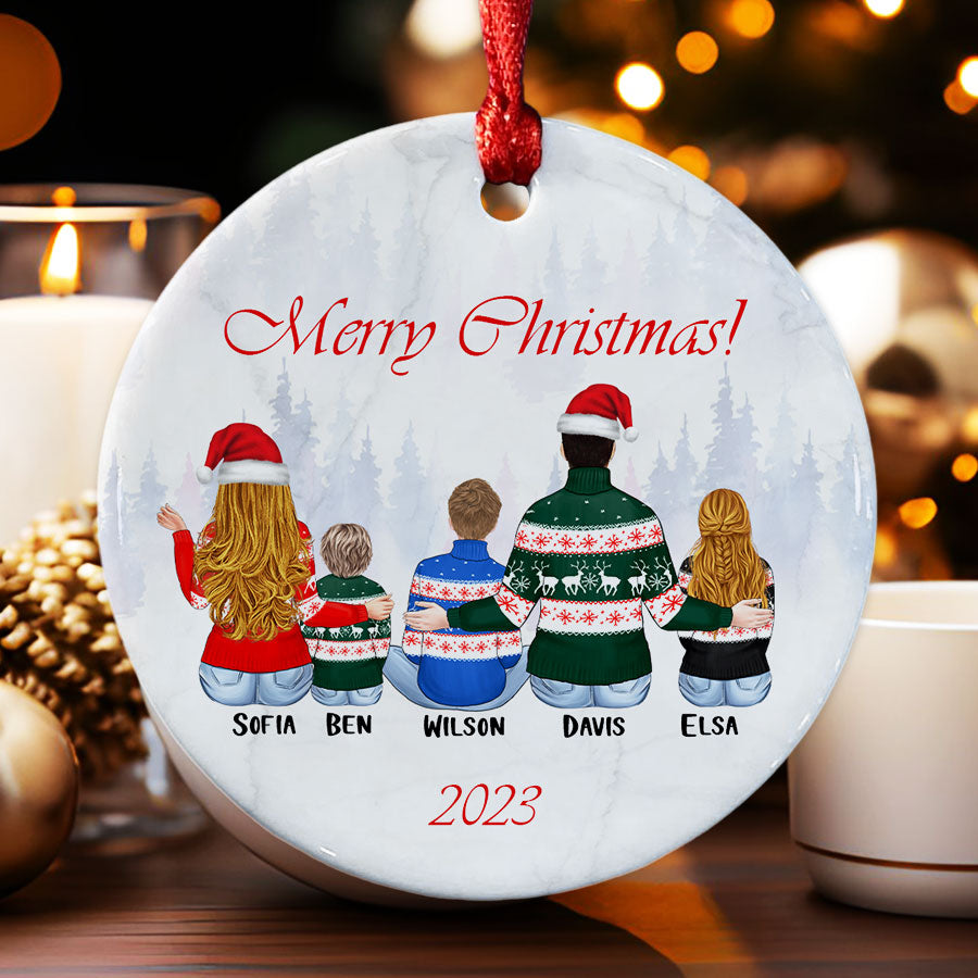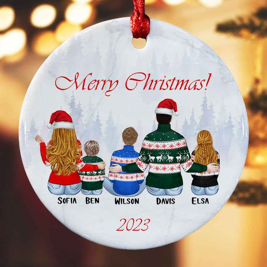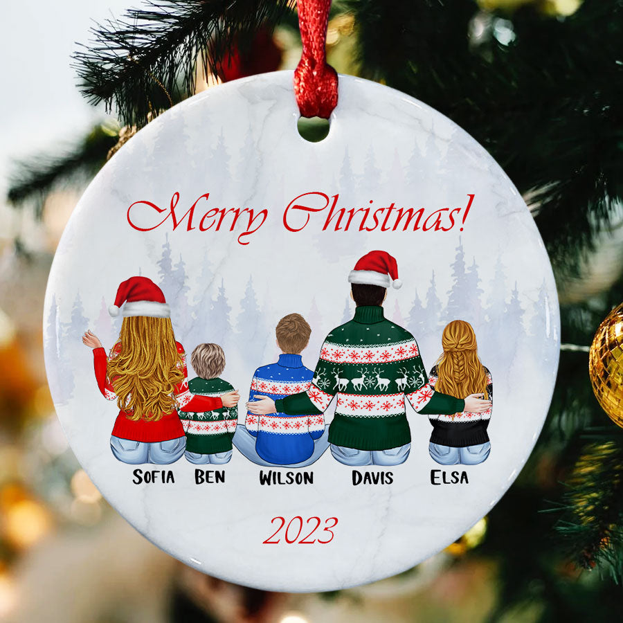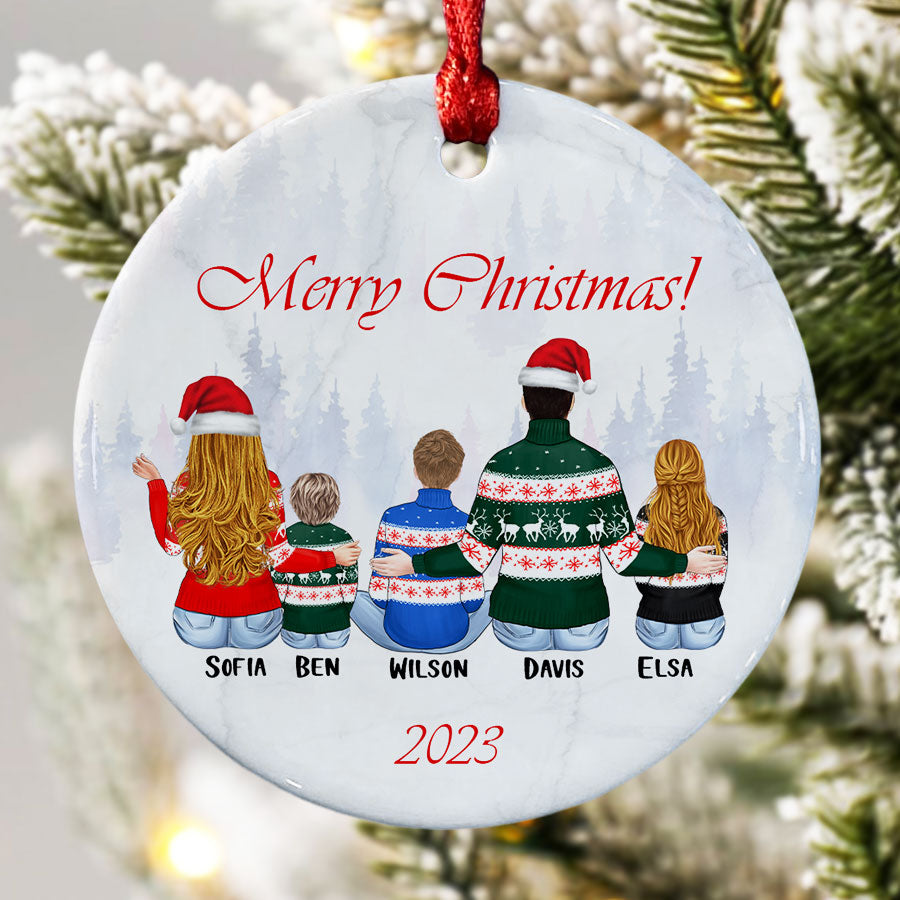 Family Of 5 Christmas Ornaments | Family Christmas Ornaments 2023 | Personalized Ceramic Ornaments