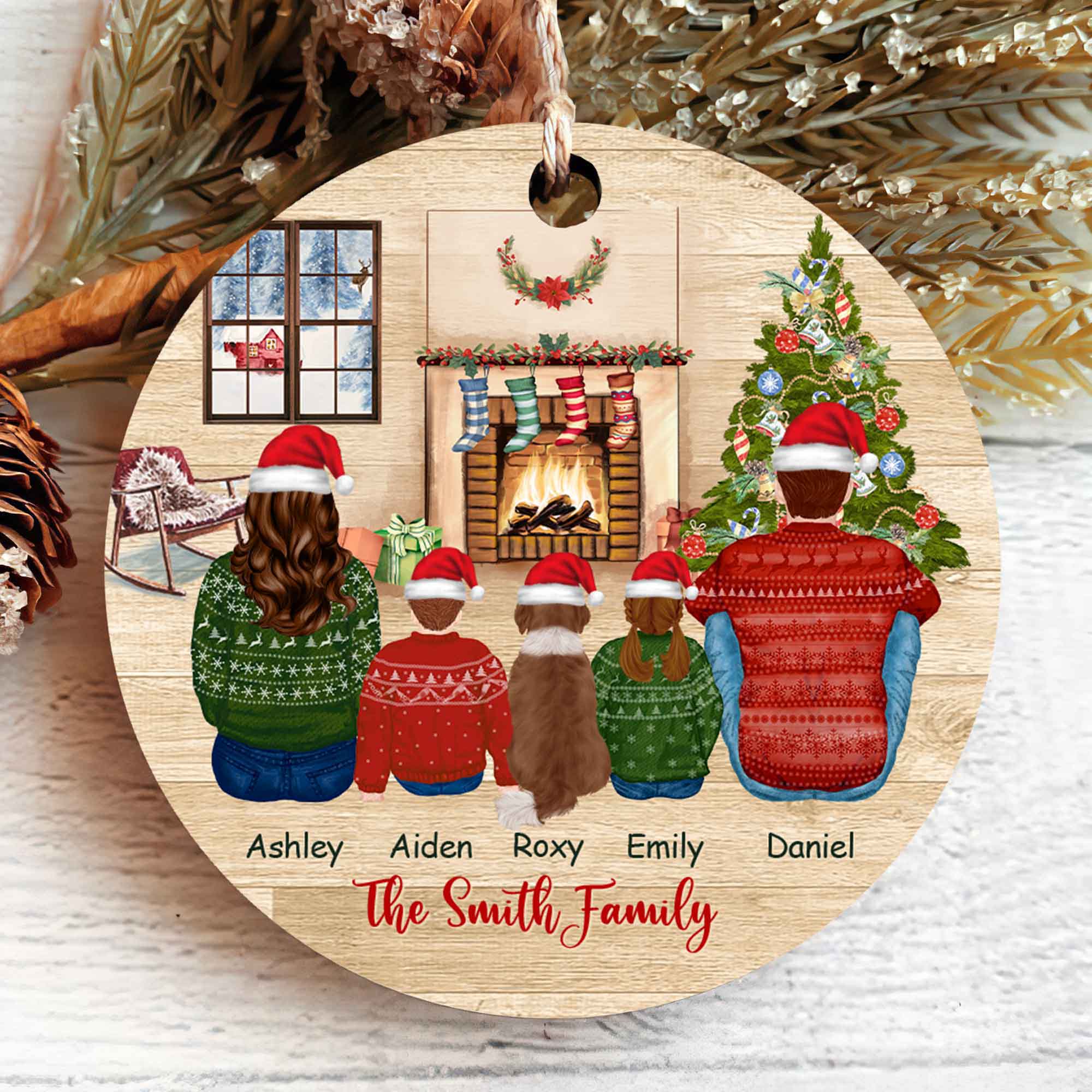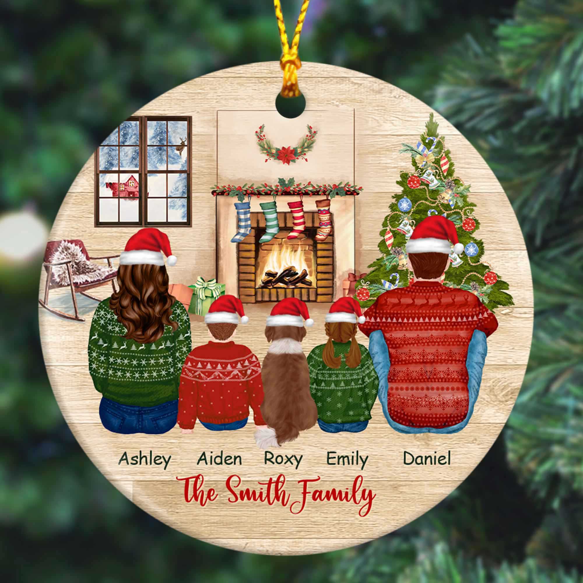 Family Christmas Ornament with Dog, Custom Christmas Ornament with Names, Family of 4 Christmas Ornament, Pet Christmas Ornament
