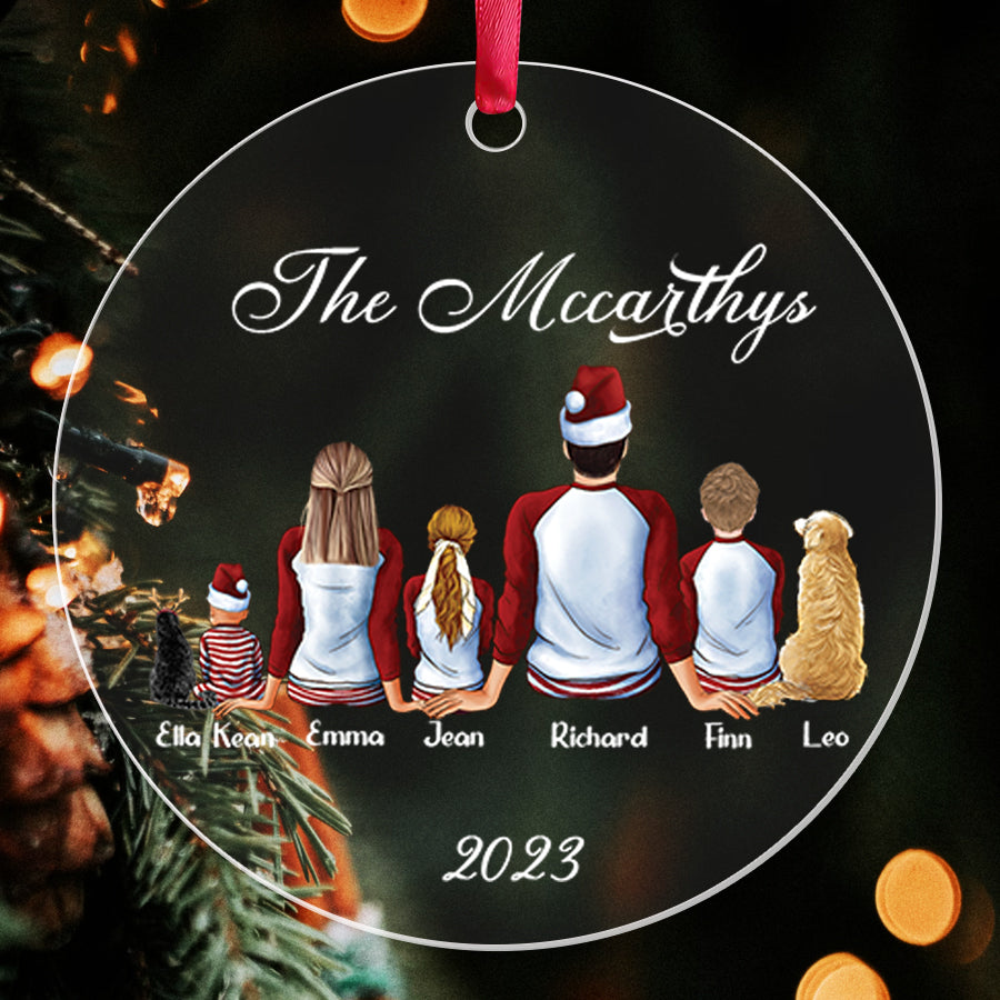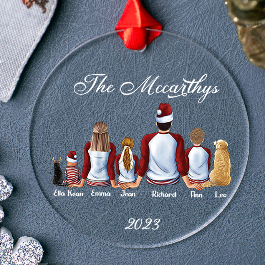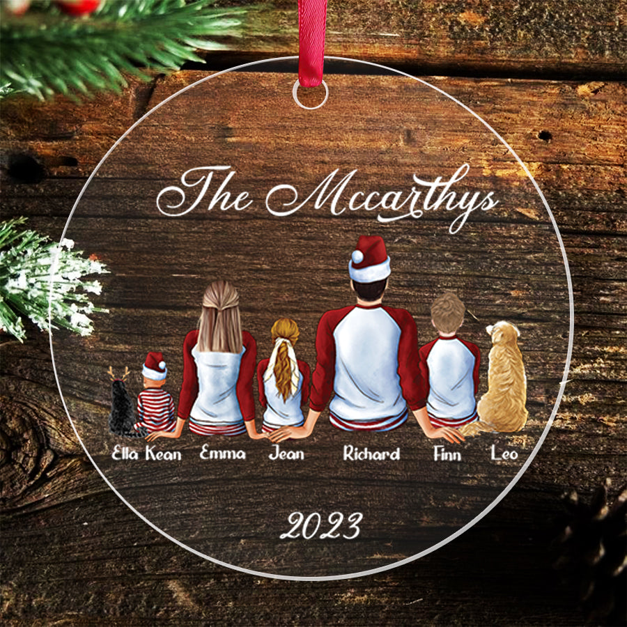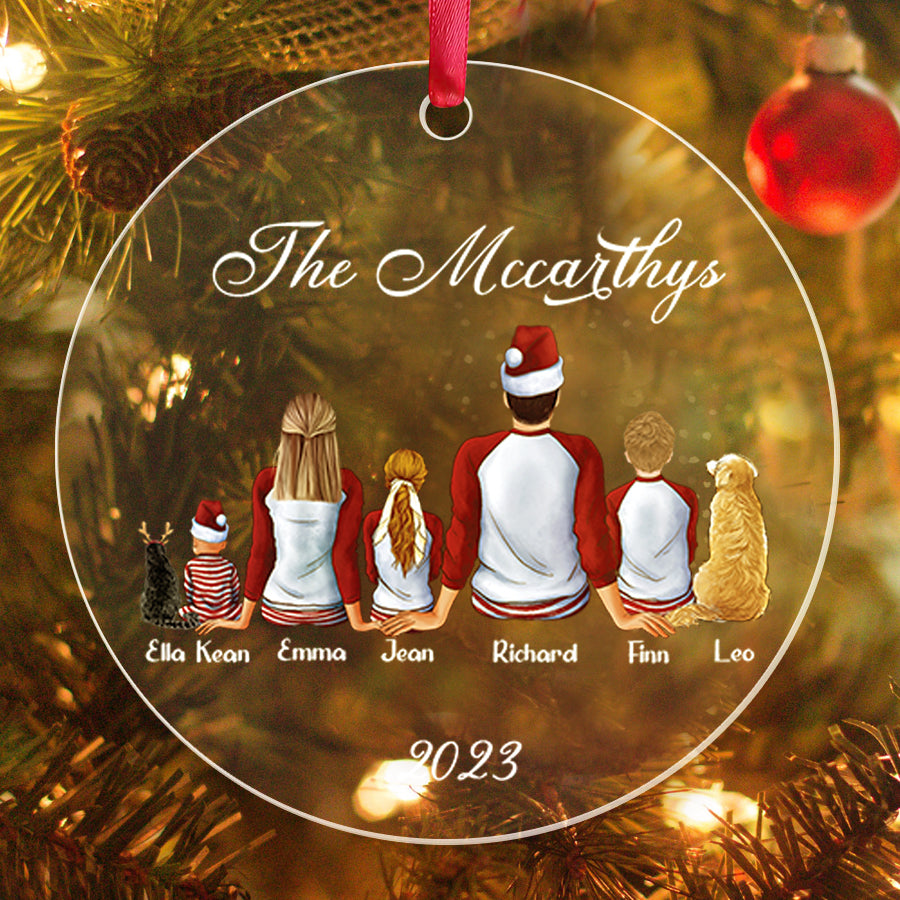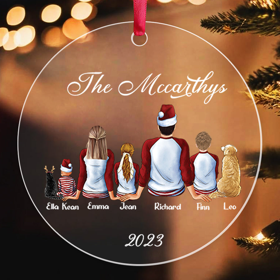 Family With Dog Ornament | Personalized Family Christmas Ornaments | Acrylic Circle Ornaments