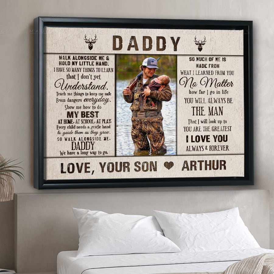 The crisp resolution of this dad photo canvas allows you to select photos with fine details that will be preserved for years to come. But more than just pictures, this gift conveys the deep love, gratitude and respect you feel for everything Dad has done for you. On Father's Day, a day set aside to honor fatherhood and all the hard work dads do every day, this personalized canvas is a thoughtful way to let him know how much you value him and celebrate all he has provided throughout the years.
