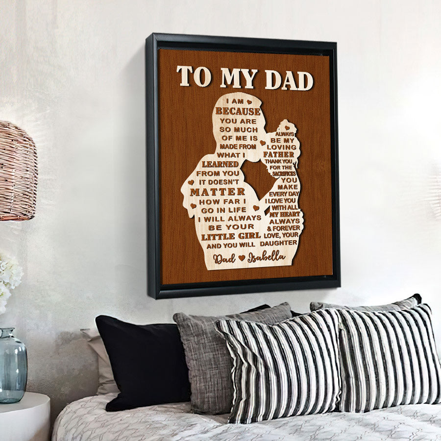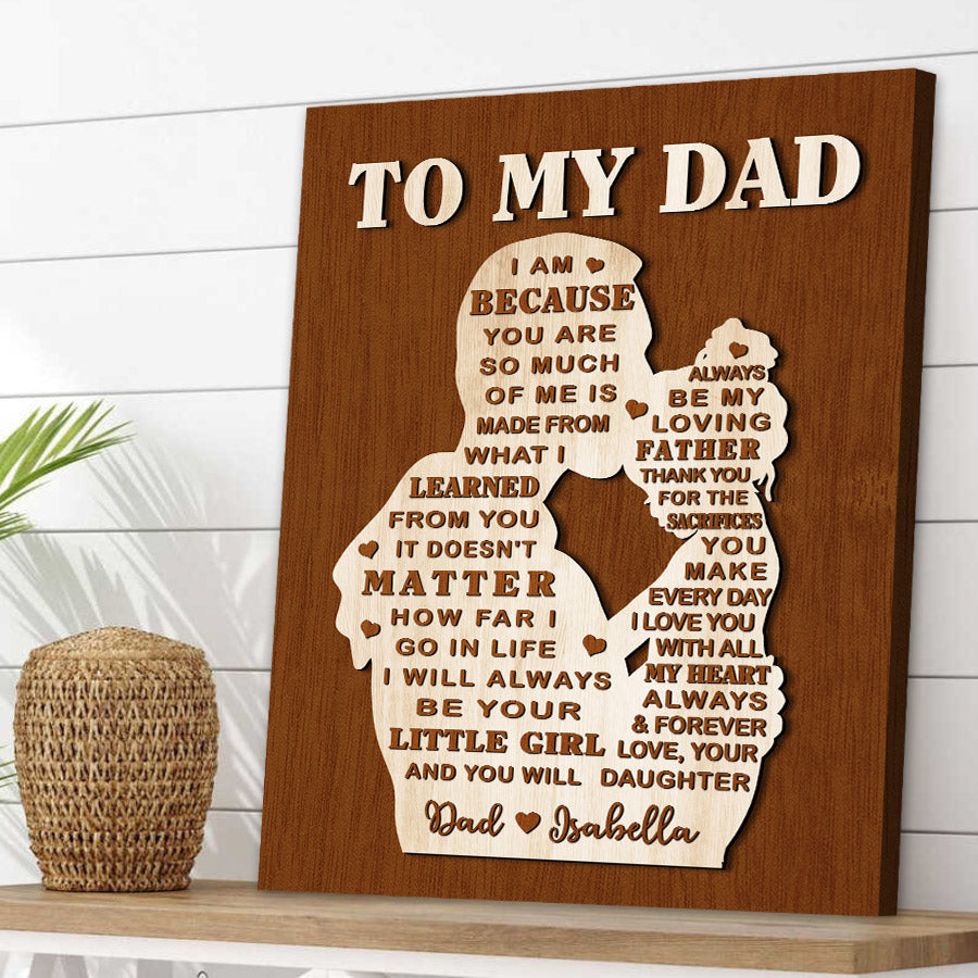 The crisp resolution of this father daughter personalized gifts allows you to select photos with fine details that will be preserved for years to come. But more than just pictures, this gift conveys the deep love, gratitude and respect you feel for everything Dad has done for you. On Father's Day, a day set aside to honor fatherhood and all the hard work dads do every day, this personalized canvas is a thoughtful way to let him know how much you value him and celebrate all he has provided throughout the years.