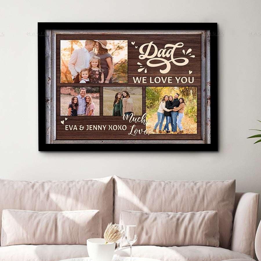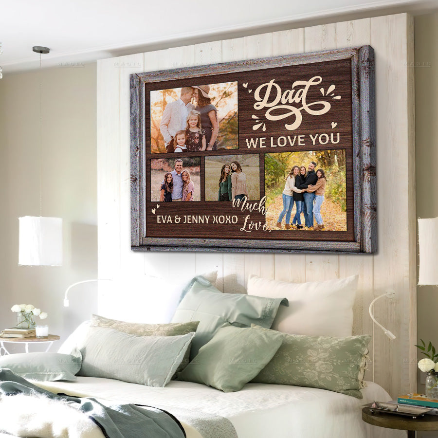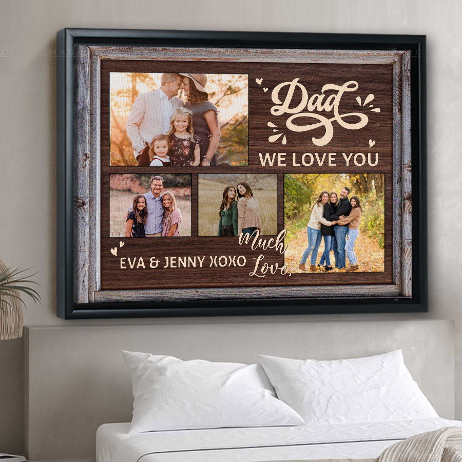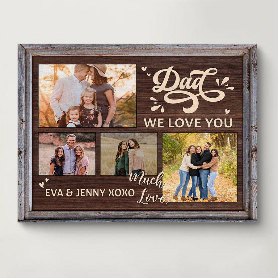 The crisp resolution of this father’s day collage canvas | dad we love you gift allows you to select photos with fine details that will be preserved for years to come. But more than just pictures, this gift conveys the deep love, gratitude and respect you feel for everything Dad has done for you. On Father's Day, a day set aside to honor fatherhood and all the hard work dads do every day, this personalized canvas is a thoughtful way to let him know how much you value him and celebrate all he has provided throughout the years.