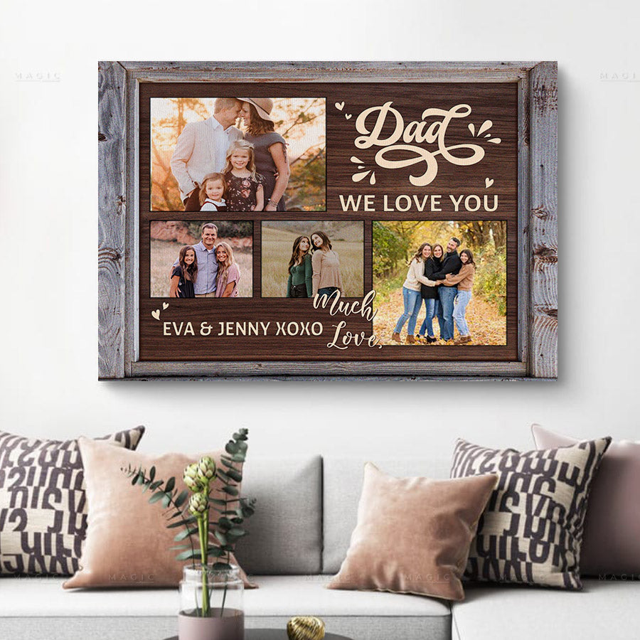 Whether you celebrate with a barbecue in the backyard or relaxing at home, making Dad feel special on his day is what Father's Day is all about. Shop now and create a father’s day collage canvas | dad we love you gift that lets Dad know exactly how much he means. His smile will say it all when he opens this personalized gift from his loved ones this Father's Day.