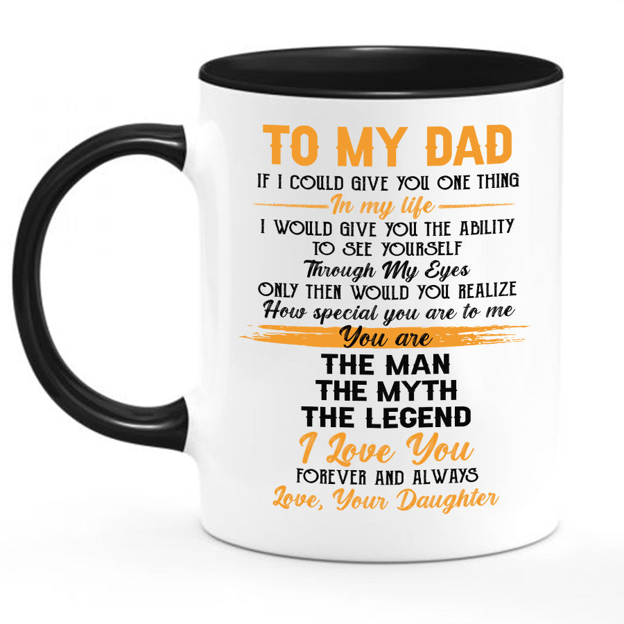 This custom Dad mug is the perfect gift to celebrate your bond with your father. A father day mugs is a simple yet meaningful Father's Day gift that shows you were thinking of him throughout the year. When you give dad mug, you're giving him a place for his favorite drink and a reminder of your gratitude for all that he does. That morning cup of coffee in his personalized mug will bring a smile to his face and memories of the moments you've shared together.