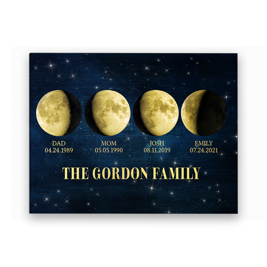 Our personalized canvas décor makes the perfect father’s day canvas | custom family moon phase wall art. For a new father, nothing compares to the joy, love, and responsibility that comes with embracing his new role.