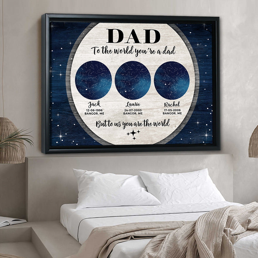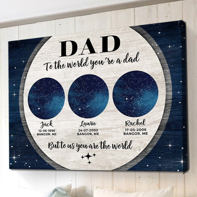 Whether you celebrate with a barbecue in the backyard or relaxing at home, making Dad feel special on his day is what Father's Day is all about. Shop now and create a father’s day canvas prints | dad to the world you’re a dad that lets Dad know exactly how much he means. His smile will say it all when he opens this personalized gift from his loved ones this Father's Day.