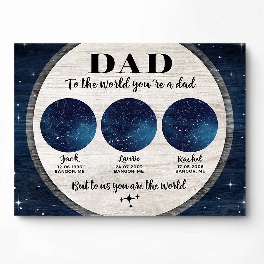 The crisp resolution of this father’s day canvas prints | dad to the world you’re a dad allows you to select photos with fine details that will be preserved for years to come. But more than just pictures, this gift conveys the deep love, gratitude and respect you feel for everything Dad has done for you. On Father's Day, a day set aside to honor fatherhood and all the hard work dads do every day, this personalized canvas is a thoughtful way to let him know how much you value him and celebrate all he has provided throughout the years.