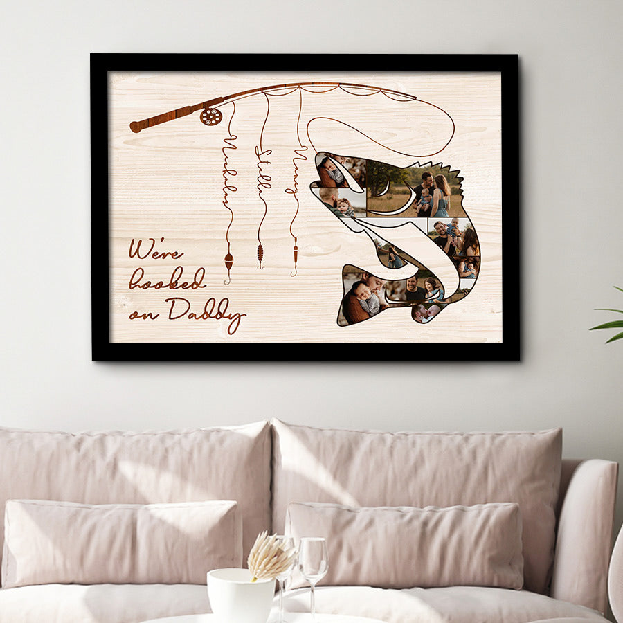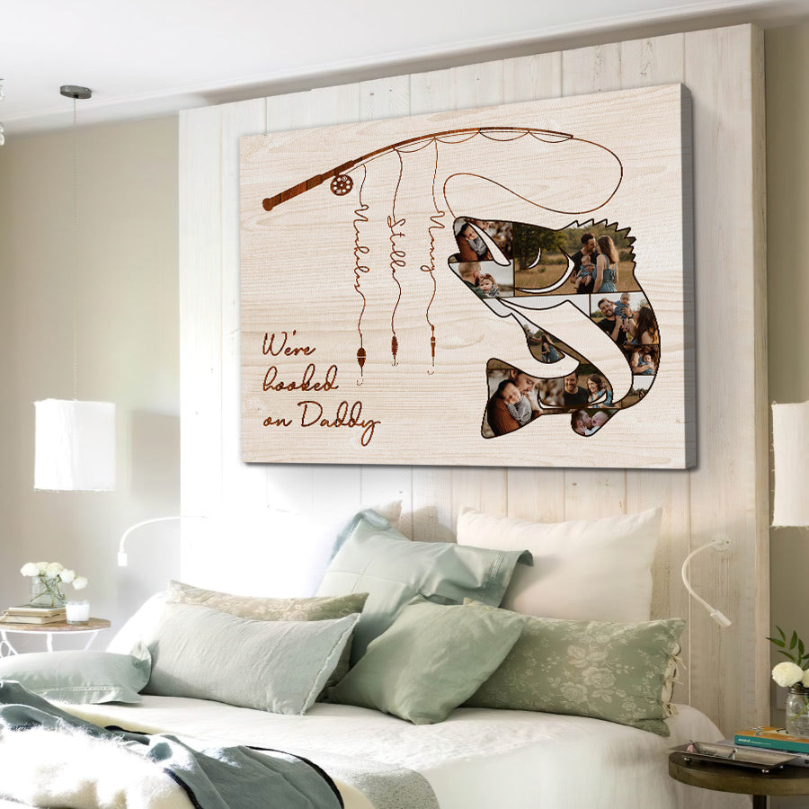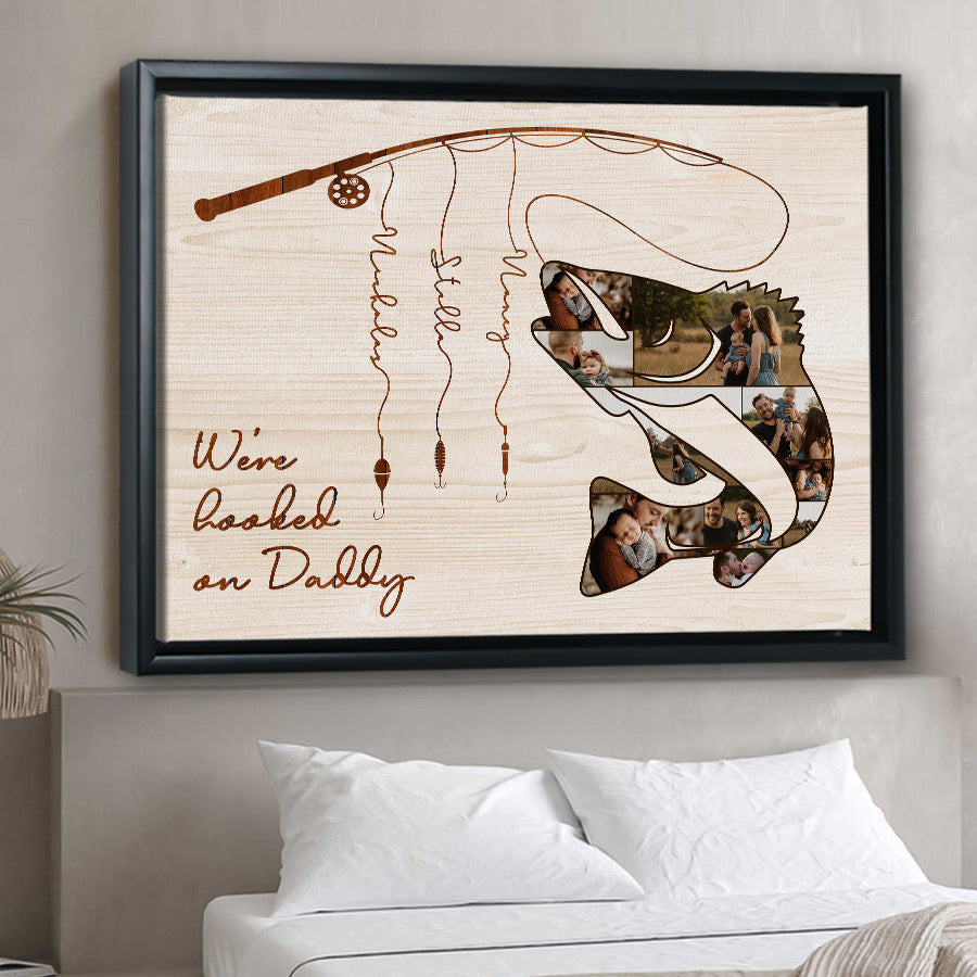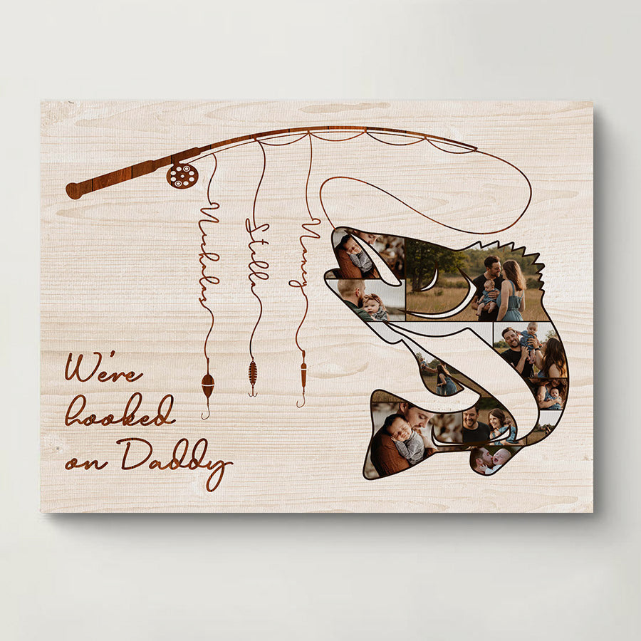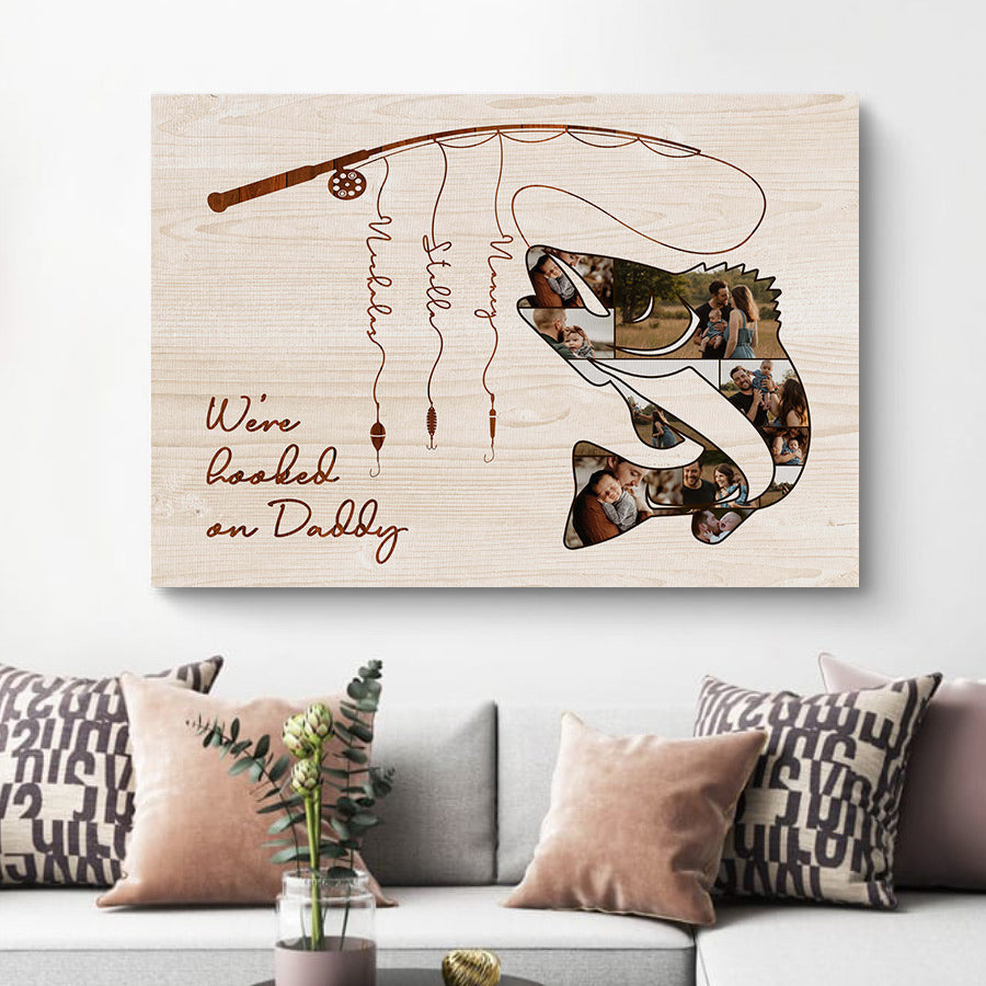 The crisp resolution of this father’s day fishing gifts | we’re hooked on daddy gift from daughter son allows you to select photos with fine details that will be preserved for years to come. But more than just pictures, this gift conveys the deep love, gratitude and respect you feel for everything Dad has done for you. On Father's Day, a day set aside to honor fatherhood and all the hard work dads do every day, this personalized canvas is a thoughtful way to let him know how much you value him and celebrate all he has provided throughout the years.