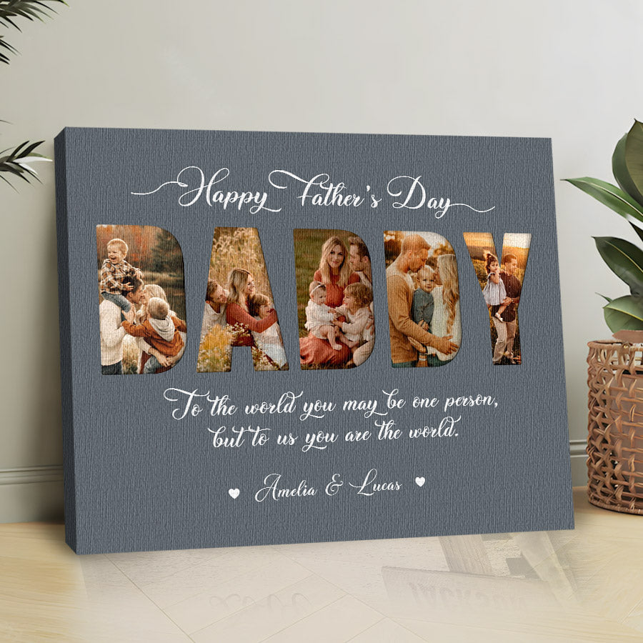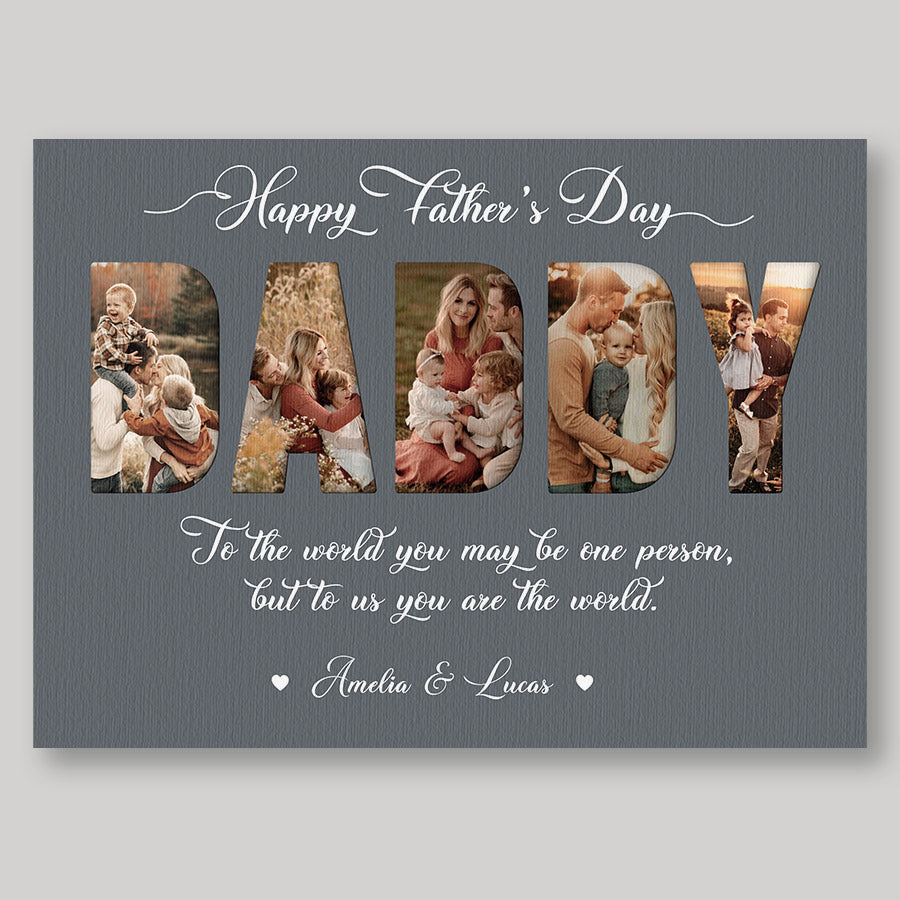 The crisp resolution of this fathers day gift 2024 | to the word you may be one person canvas allows you to select photos with fine details that will be preserved for years to come. But more than just pictures, this gift conveys the deep love, gratitude and respect you feel for everything Dad has done for you. On Father's Day, a day set aside to honor fatherhood and all the hard work dads do every day, this personalized canvas is a thoughtful way to let him know how much you value him and celebrate all he has provided throughout the years.