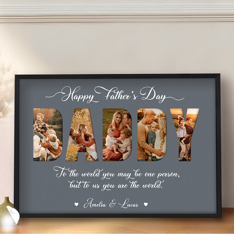 What better way to show your appreciation for Dad than a fathers day gift 2024 | to the word you may be one person canvas that captures memories you've created together over the years? This high-quality gift comes ready to be customized with photos that will bring a smile to his face each time he looks at it. From childhood pictures to recent family vacations, you can select images that remind him of how much he means to you and your family.