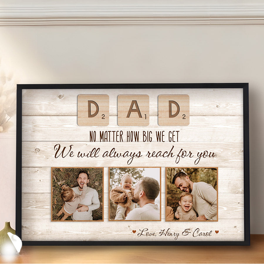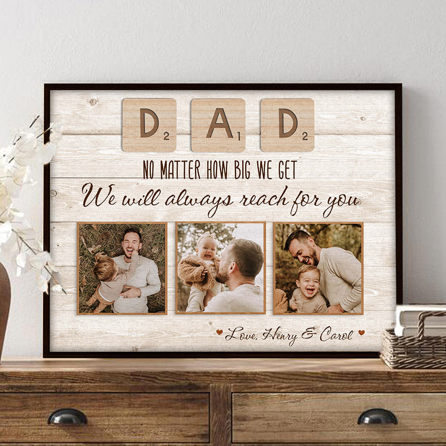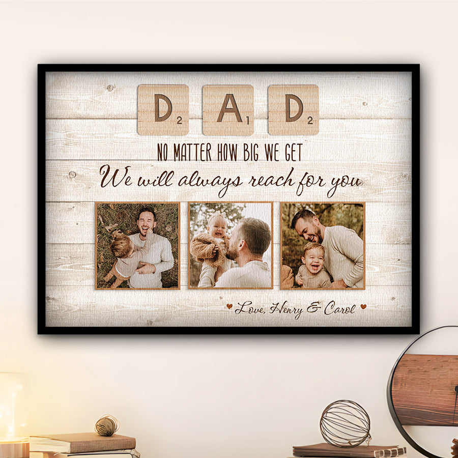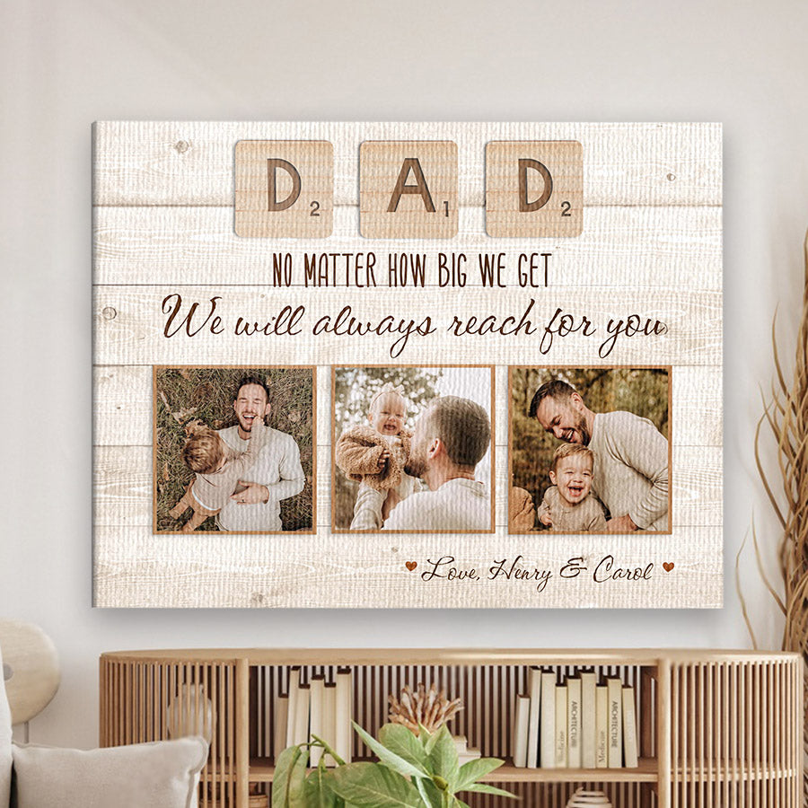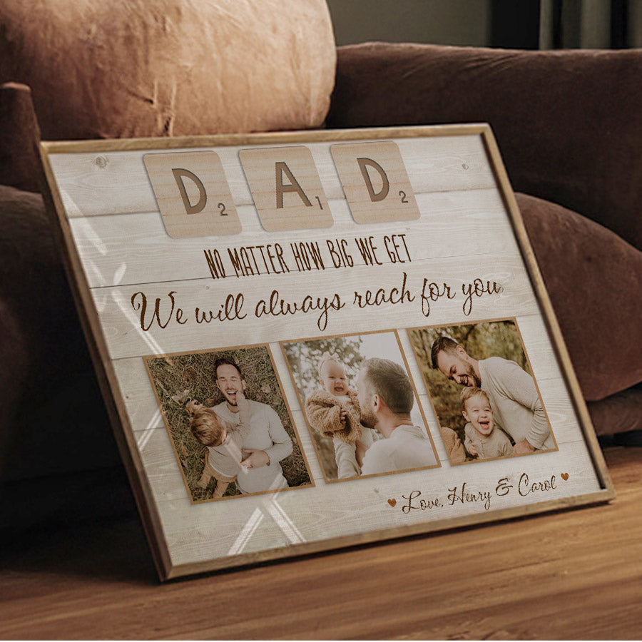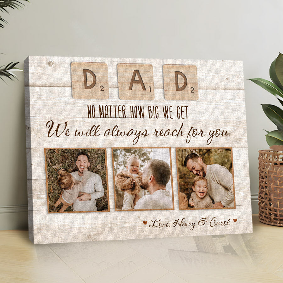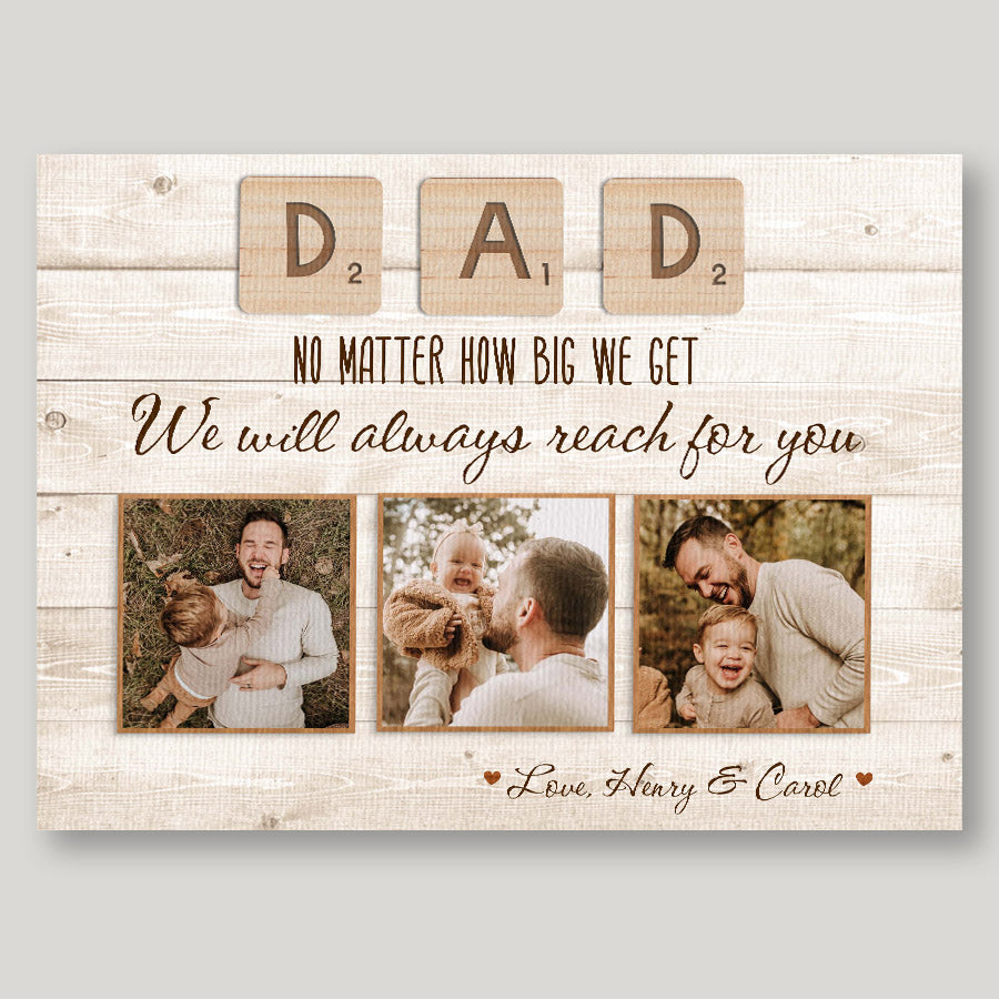 Treat the new dad in your life to father’s day gift canvas | personalized father’s day gift that commemorates the baby's arrival and his first Father's Day. Our personalized photo canvas is sure to bring a smile seeing little ones grow up before their eyes. Customize it FREE now - he will love displaying this treasured memory for many years to come.