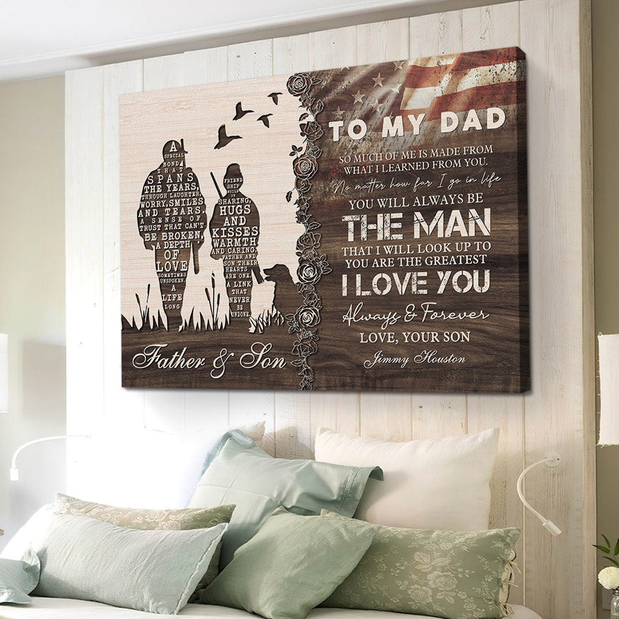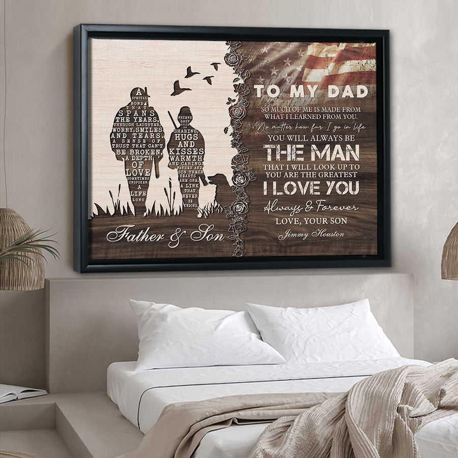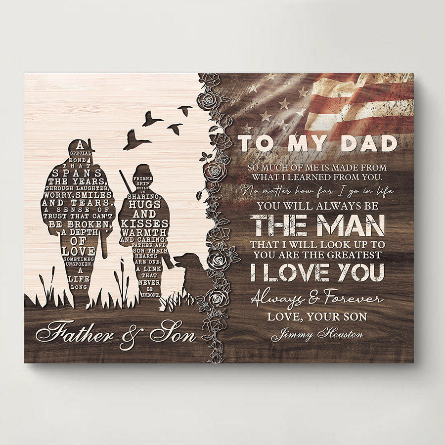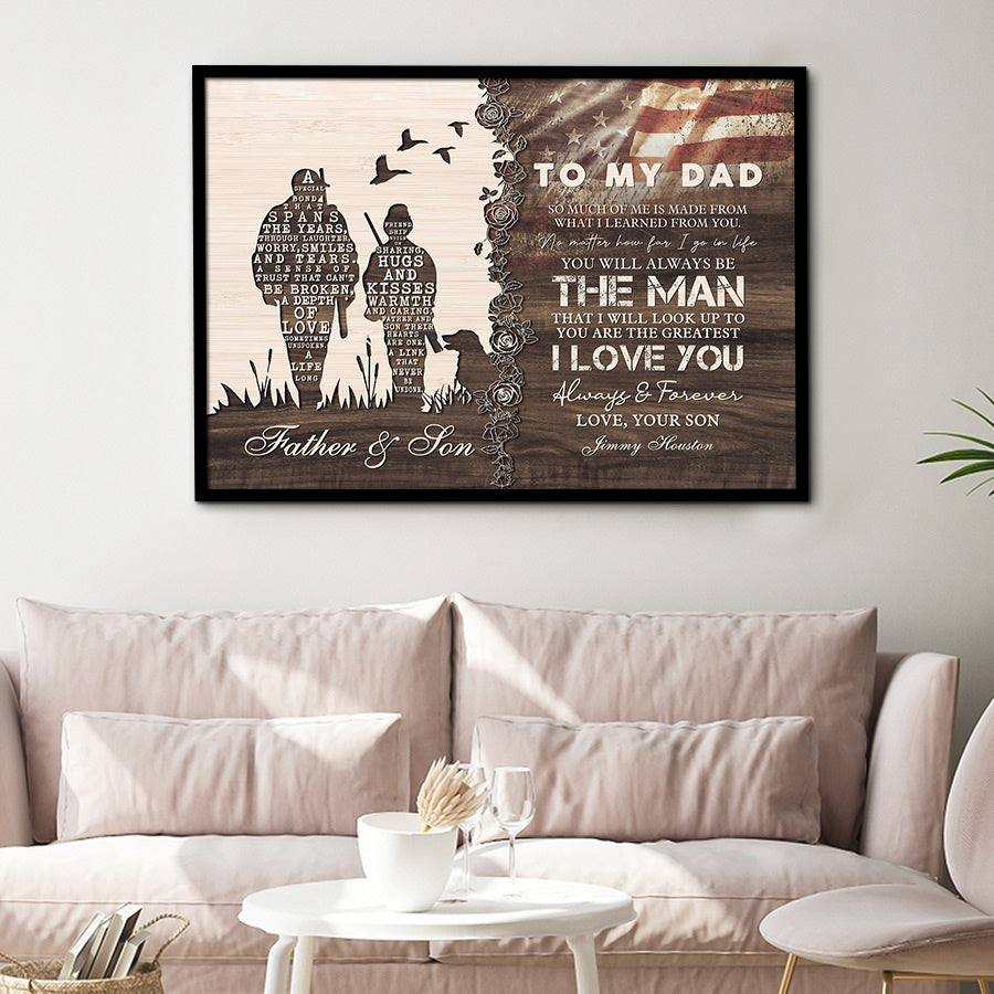 The crisp resolution of this father’s day gift canvas | to my dad father son hunting together allows you to select photos with fine details that will be preserved for years to come. But more than just pictures, this gift conveys the deep love, gratitude and respect you feel for everything Dad has done for you. On Father's Day, a day set aside to honor fatherhood and all the hard work dads do every day, this personalized canvas is a thoughtful way to let him know how much you value him and celebrate all he has provided throughout the years.