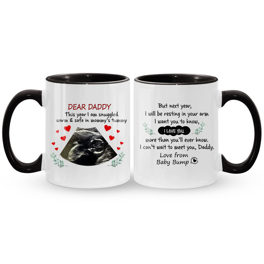 Giving fathers day gift dad to be | mug with custom picture means thoughtfulness, appreciation, and love. Sipping his morning coffee or afternoon tea from first fathers day gift just for him lets Dad know he's truly cherished.