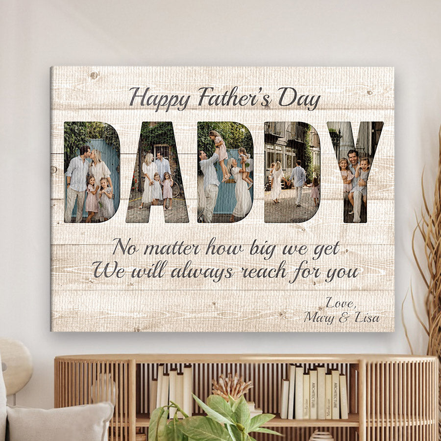 The crisp resolution of this fathers day gift | father’s day gift custom | father's day canvas allows you to select photos with fine details that will be preserved for years to come. But more than just pictures, this gift conveys the deep love, gratitude and respect you feel for everything Dad has done for you. On Father's Day, a day set aside to honor fatherhood and all the hard work dads do every day, this personalized canvas is a thoughtful way to let him know how much you value him and celebrate all he has provided throughout the years.
