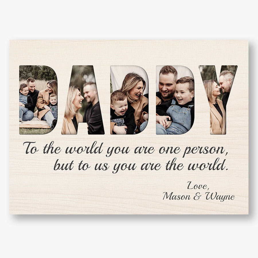 Whether you celebrate with a barbecue in the backyard or relaxing at home, making Dad feel special on his day is what Father's Day is all about. Shop now and create a fathers day gift | fathers day gift for dad | father’s day canvas prints that lets Dad know exactly how much he means. His smile will say it all when he opens this personalized gift from his loved ones this Father's Day.