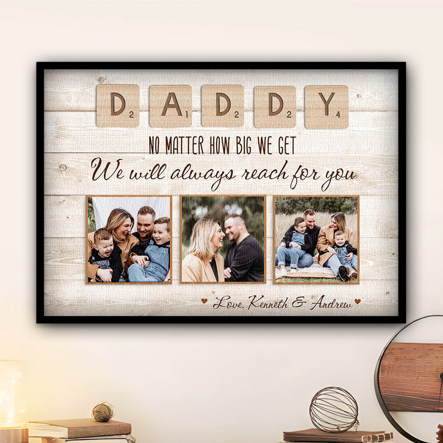 Treat the new dad in your life to Fathers Day Gift that commemorates the baby's arrival and his first Father's Day. Our personalized photo canvas is sure to bring a smile seeing little ones grow up before their eyes. Customize it FREE now - he will love displaying this treasured memory for many years to come.