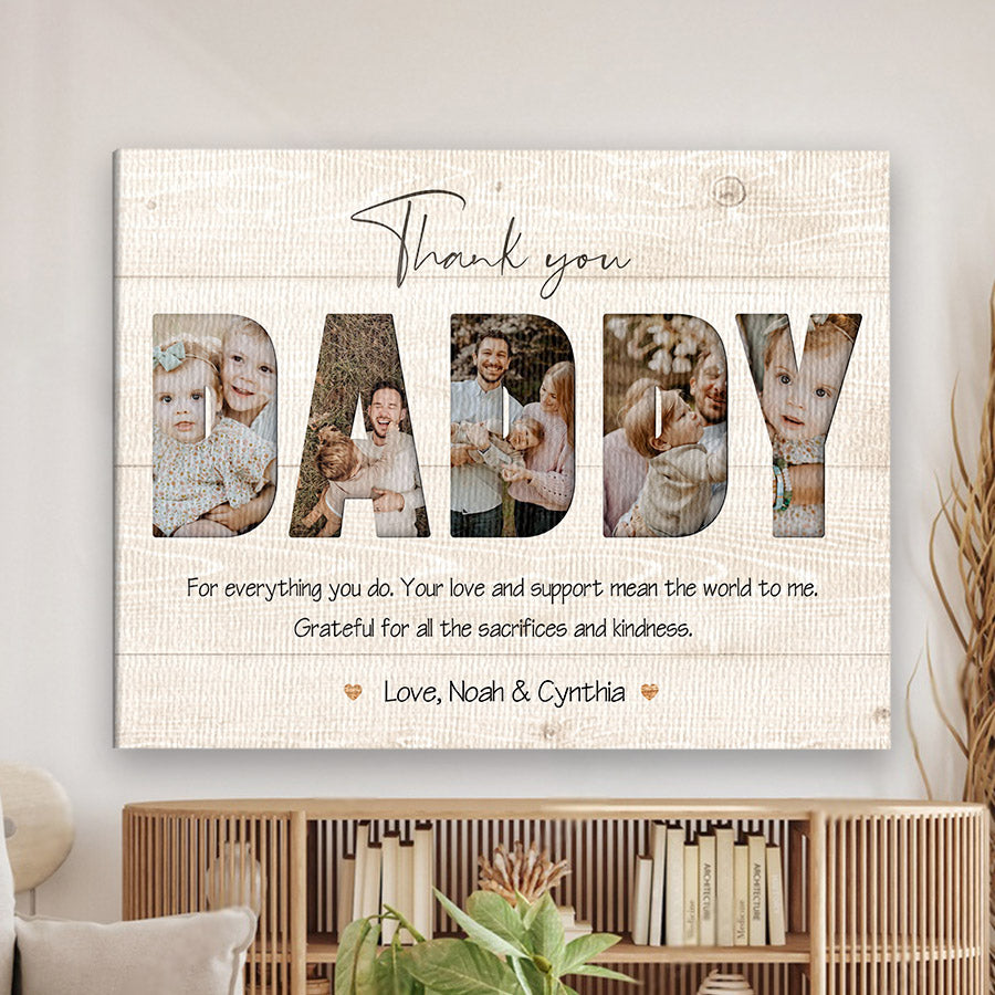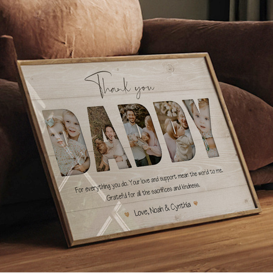 The crisp resolution of this fathers day gift for dad | custom fathers day gift | fathers day gift allows you to select photos with fine details that will be preserved for years to come. But more than just pictures, this gift conveys the deep love, gratitude and respect you feel for everything Dad has done for you. On Father's Day, a day set aside to honor fatherhood and all the hard work dads do every day, this personalized canvas is a thoughtful way to let him know how much you value him and celebrate all he has provided throughout the years.