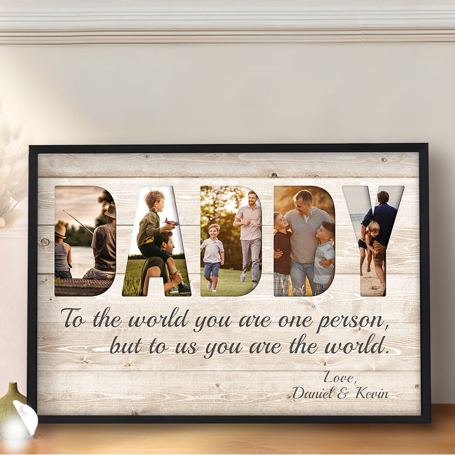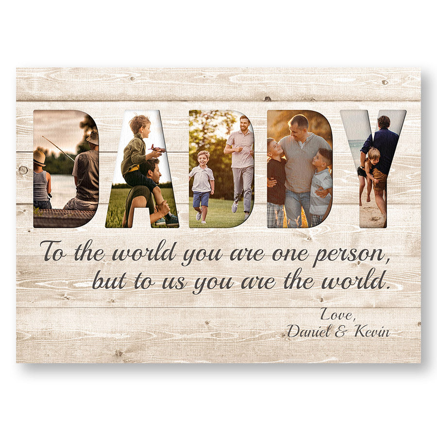 What better way to show your appreciation for Dad than a fathers day gift for dad | father’s day gift custom | canvas for father’s day that captures memories you've created together over the years? This high-quality gift comes ready to be customized with photos that will bring a smile to his face each time he looks at it. From childhood pictures to recent family vacations, you can select images that remind him of how much he means to you and your family.