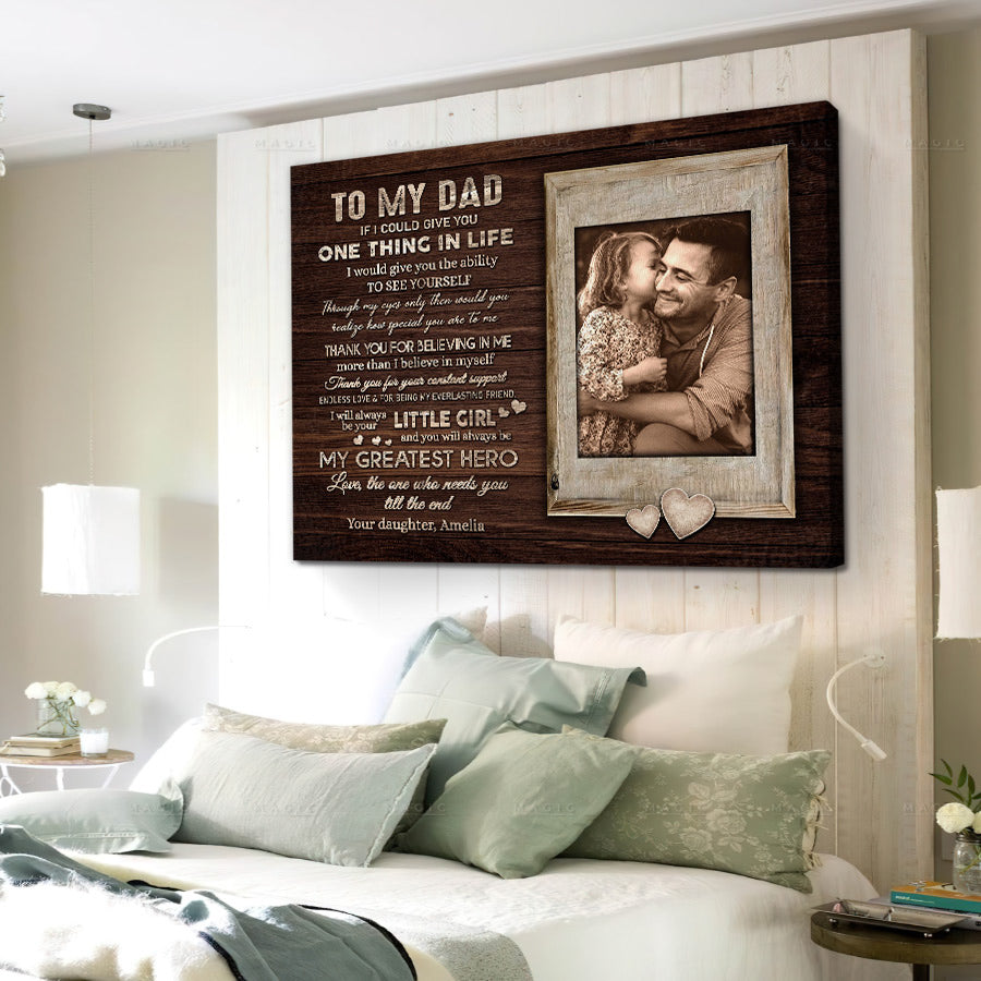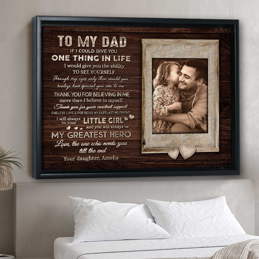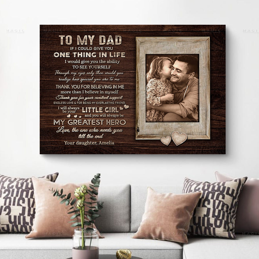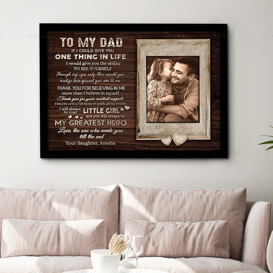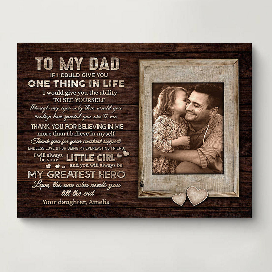 The crisp resolution of this custom father daughter gift allows you to select photos with fine details that will be preserved for years to come. But more than just pictures, this gift conveys the deep love, gratitude and respect you feel for everything Dad has done for you. On Father's Day, a day set aside to honor fatherhood and all the hard work dads do every day, this personalized canvas is a thoughtful way to let him know how much you value him and celebrate all he has provided throughout the years.