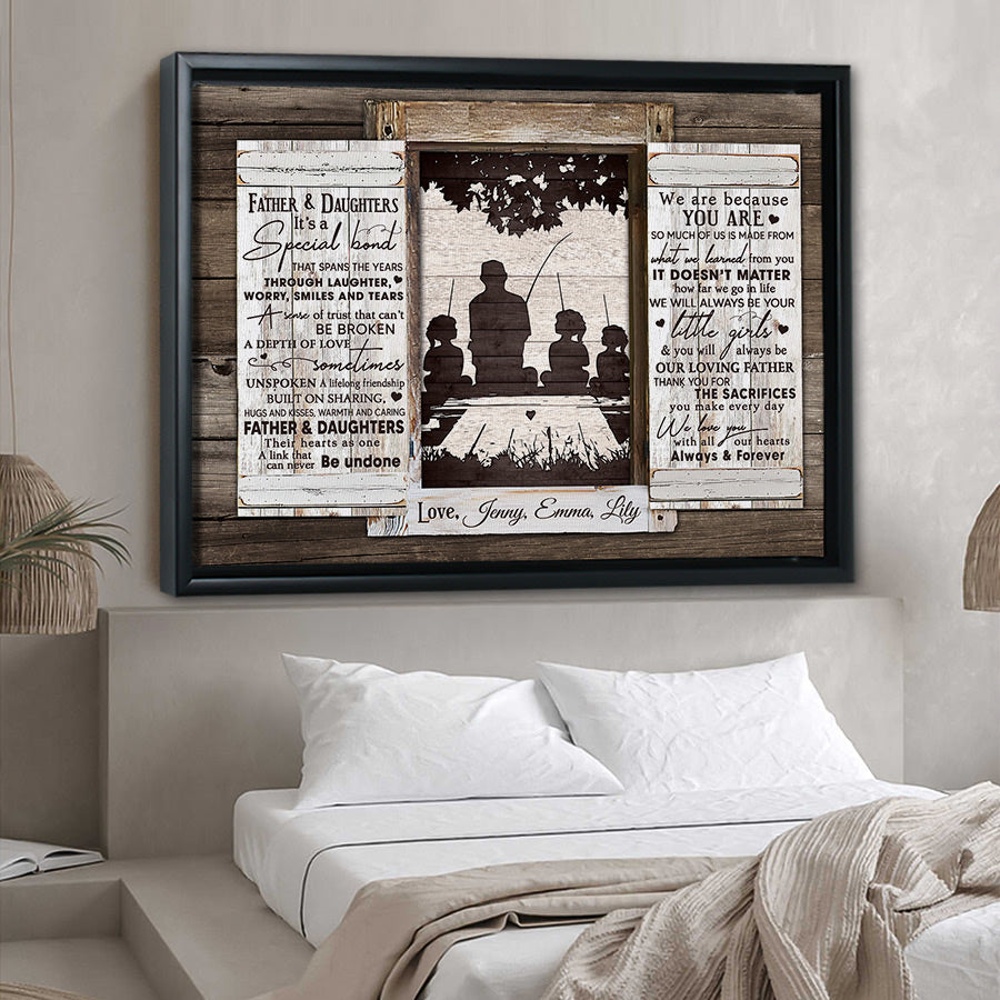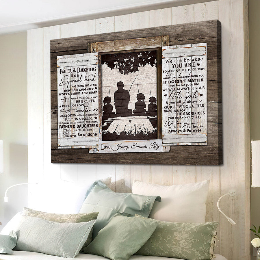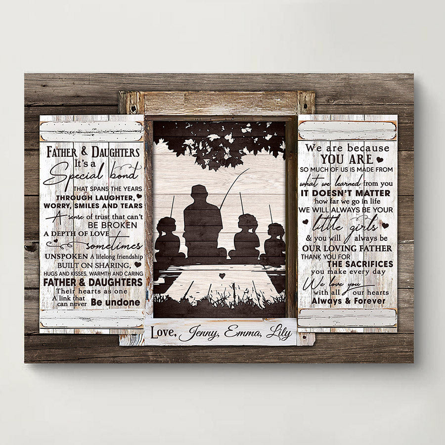 The crisp resolution of this personalized fishing gifts for dad | father & daughters it’s a special bond allows you to select photos with fine details that will be preserved for years to come. But more than just pictures, this gift conveys the deep love, gratitude and respect you feel for everything Dad has done for you. On Father's Day, a day set aside to honor fatherhood and all the hard work dads do every day, this personalized canvas is a thoughtful way to let him know how much you value him and celebrate all he has provided throughout the years.