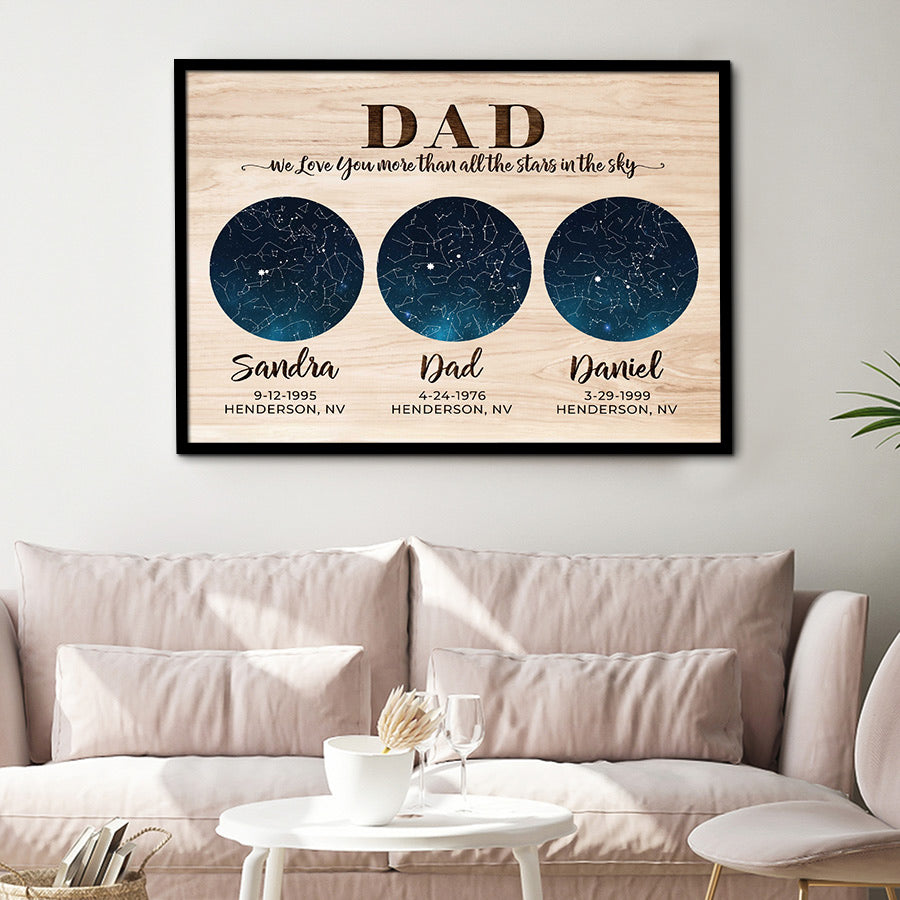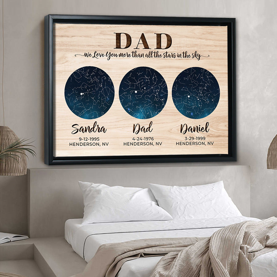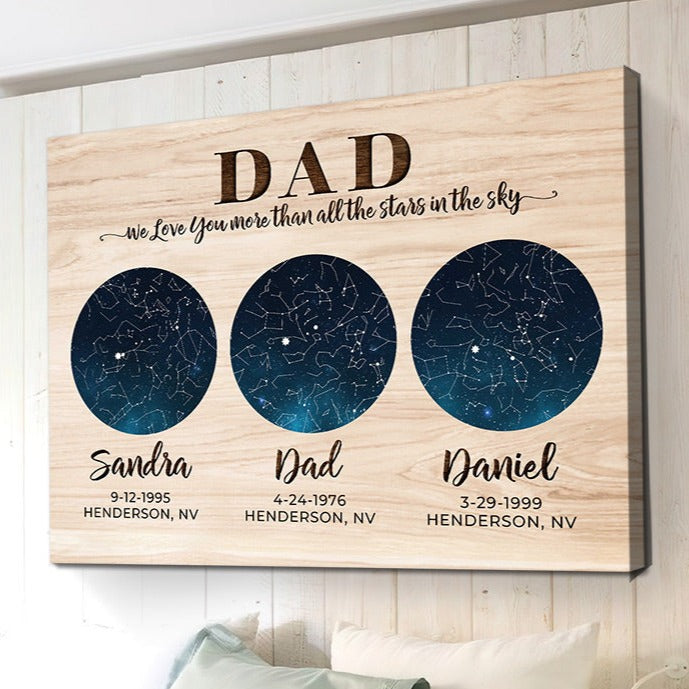 Whether you celebrate with a barbecue in the backyard or relaxing at home, making Dad feel special on his day is what Father's Day is all about. Shop now and create a father’s day personalized canvas | dad we love you more than all the stars that lets Dad know exactly how much he means. His smile will say it all when he opens this personalized gift from his loved ones this Father's Day.