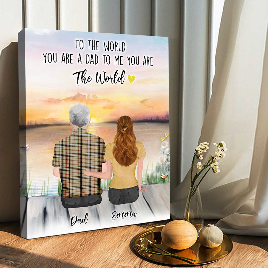 The crisp resolution of this custom father daughter gift | to the word you are a dad to me you are the word allows you to select photos with fine details that will be preserved for years to come. But more than just pictures, this gift conveys the deep love, gratitude and respect you feel for everything Dad has done for you. On Father's Day, a day set aside to honor fatherhood and all the hard work dads do every day, this personalized canvas is a thoughtful way to let him know how much you value him and celebrate all he has provided throughout the years.
