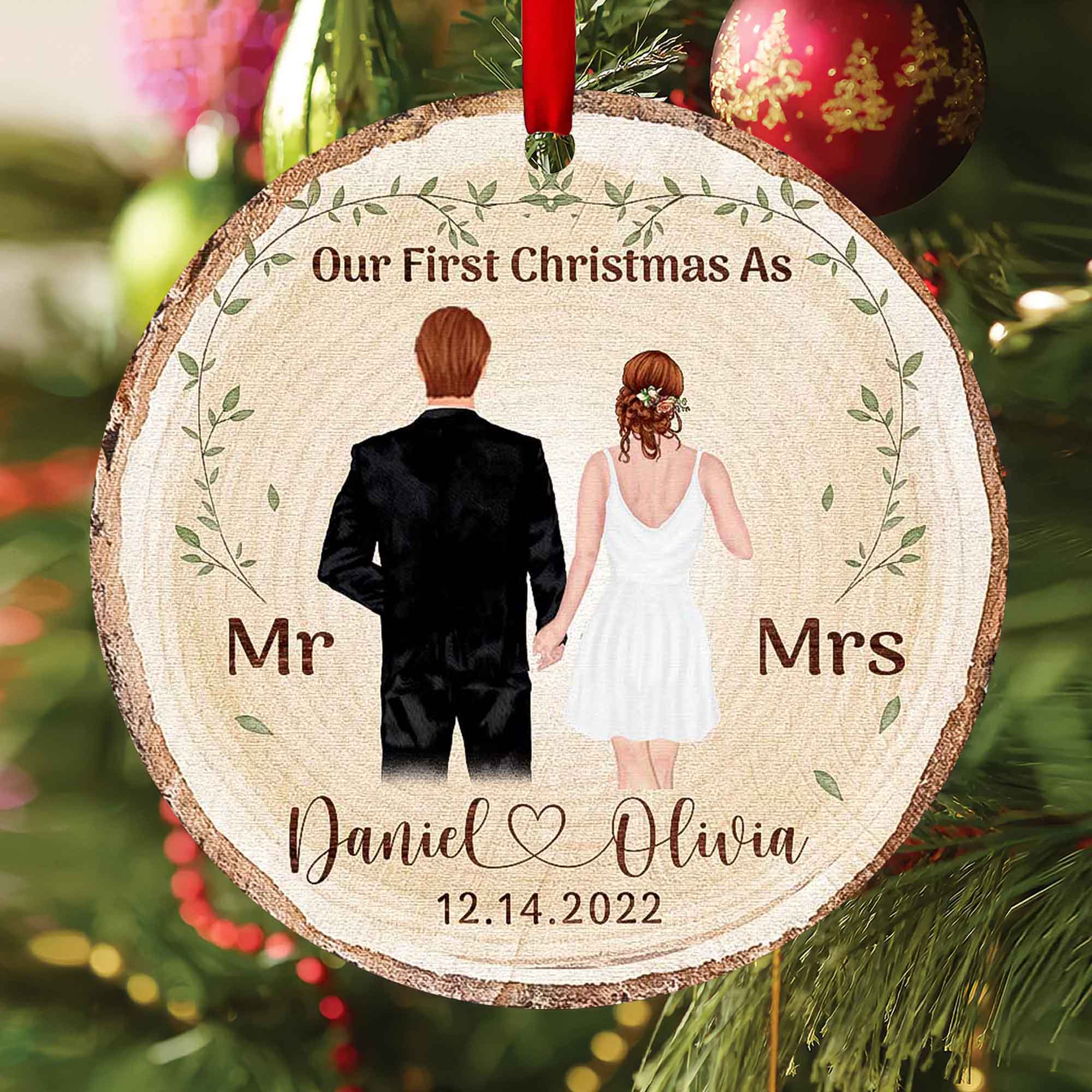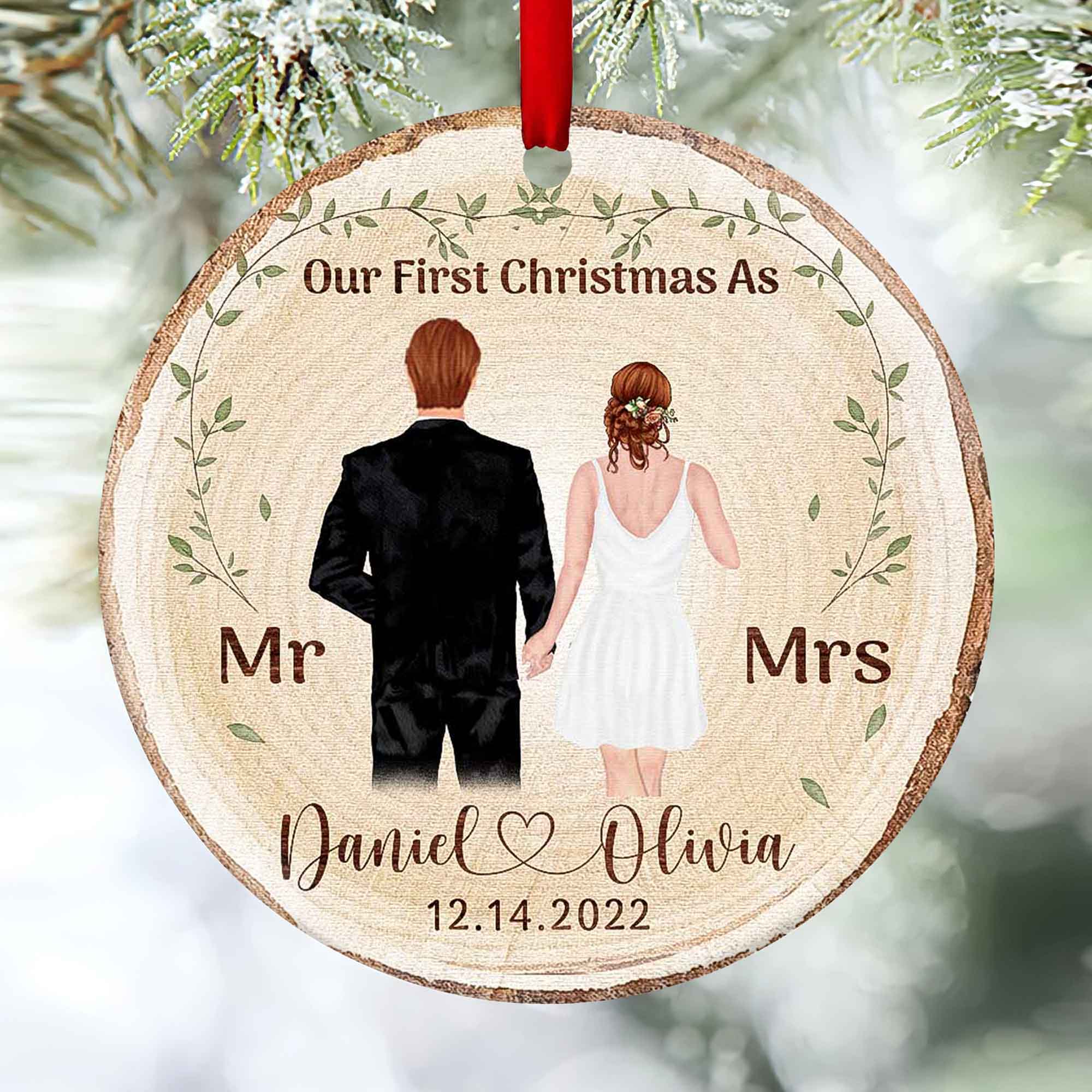 This first Christmas as Mr and Mrs ornament can be personalized with the couple's name, and wedding date, or even with some designs you can add a picture of the bride and groom to it. Our first Christmas ornament will be a gift they can cherish for years to come and will always remind them of their special day.