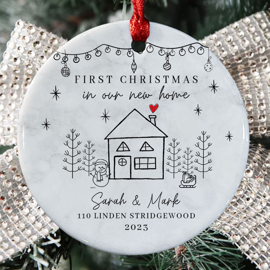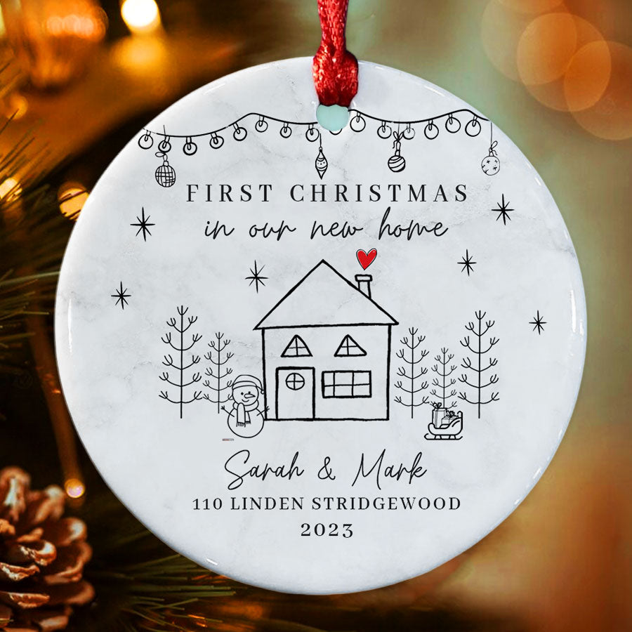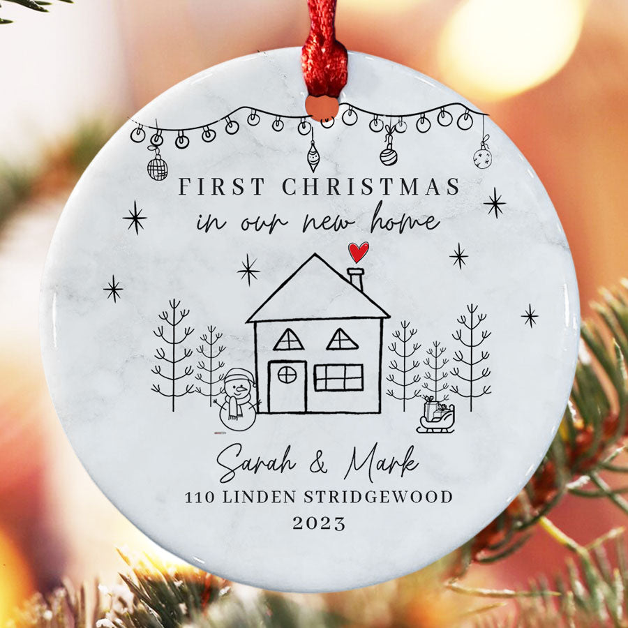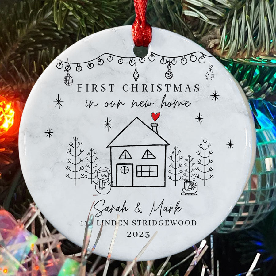 First Home Christmas Ornament | 1St Christmas In New Home Ornament | Custom New Home Ornament | White Ceramic Personalized Ornaments