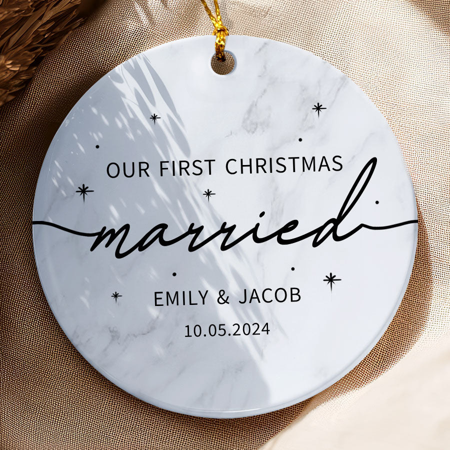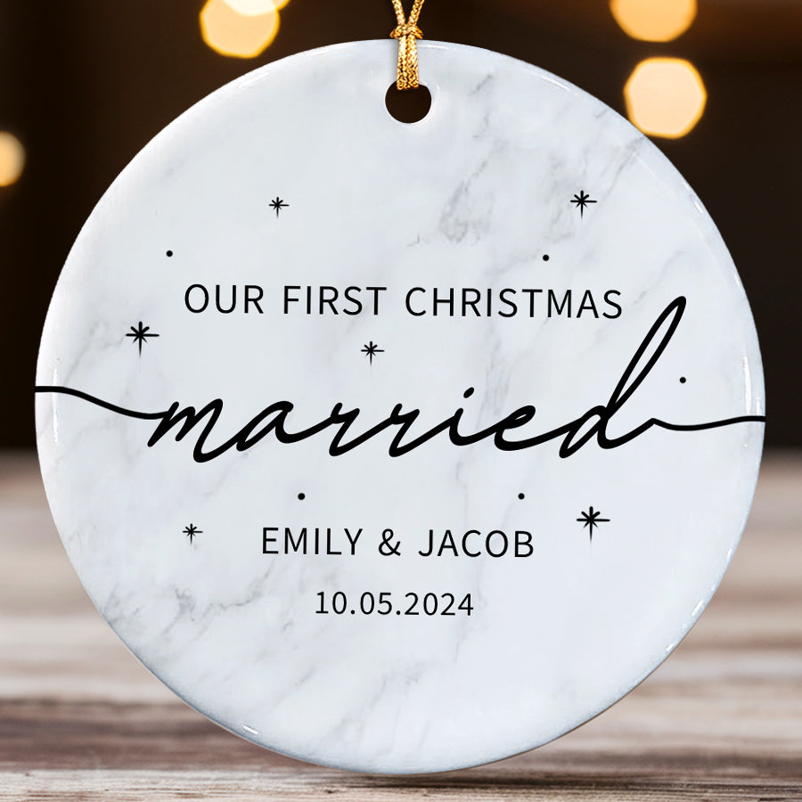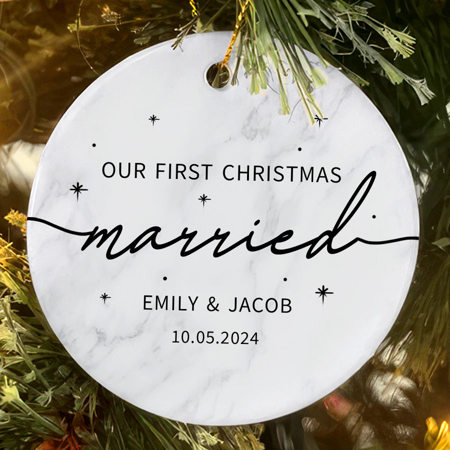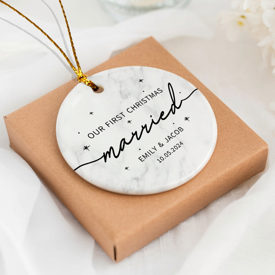Make your holiday sparkle with love! Order your personalized First Christmas Married Ornament today and cherish this heartfelt memento forever.