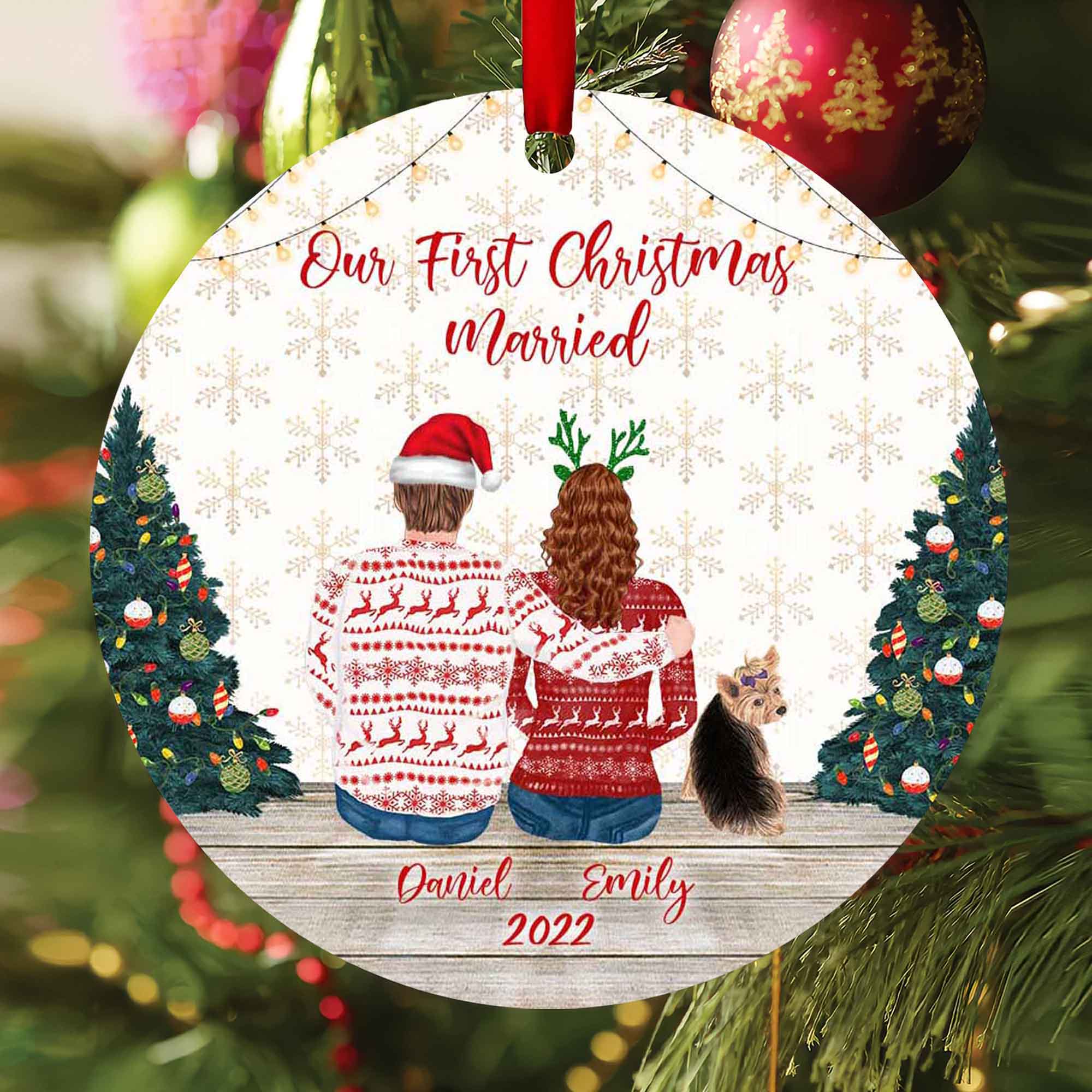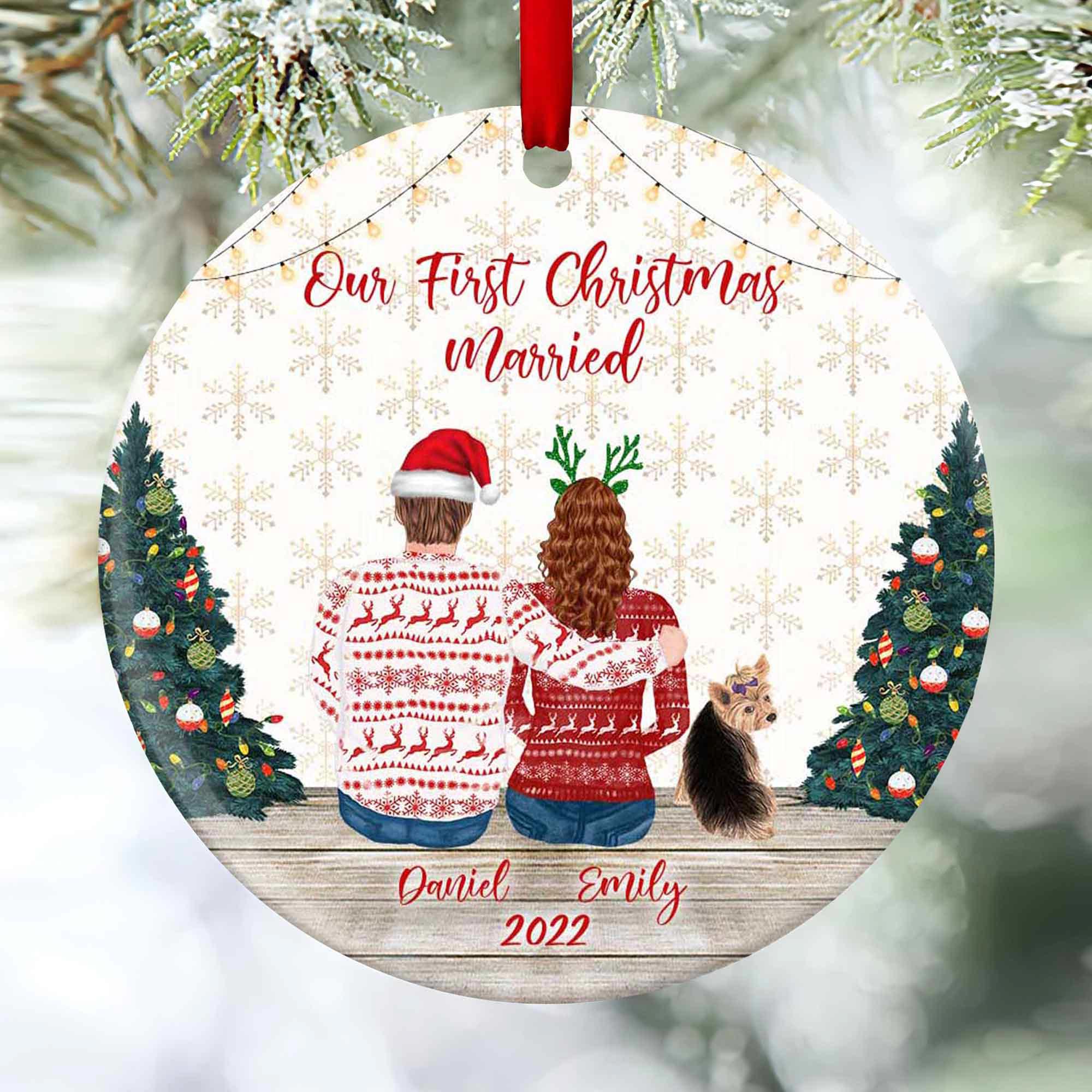 This first christmas ornament married can be personalized with the couple's name, and wedding date, or even with some designs you can add a picture of the bride and groom to it. Our first Christmas ornament will be a gift they can cherish for years to come and will always remind them of their special day.