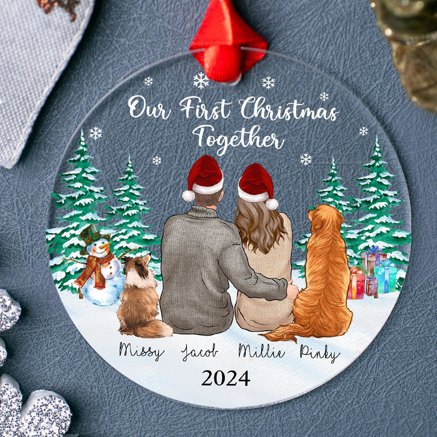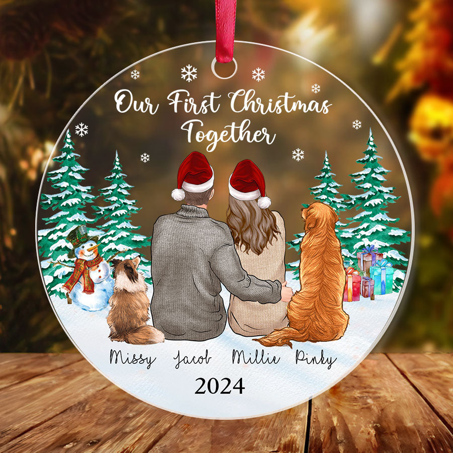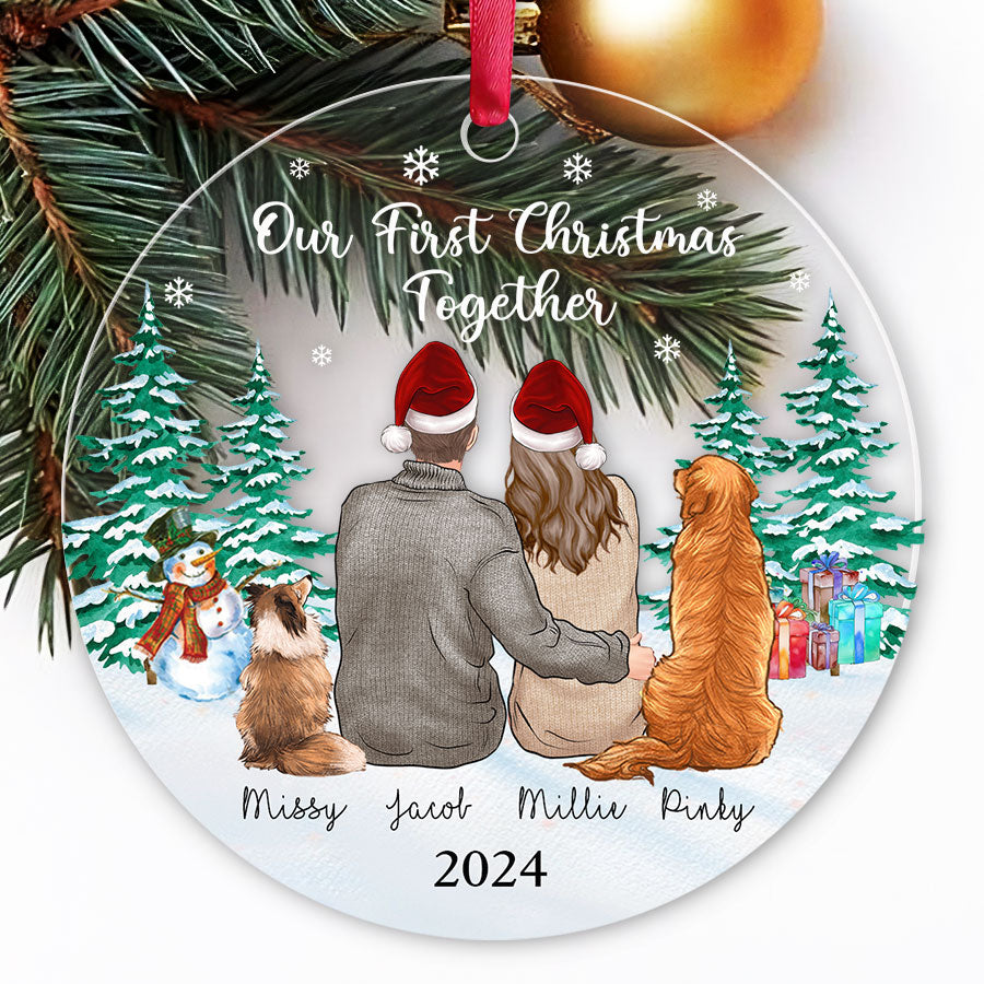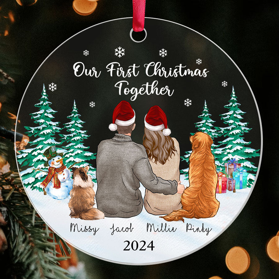 Our First Christmas Ornament | Custom Couple Acrylic Ornament With Dogs| Circle Shape
