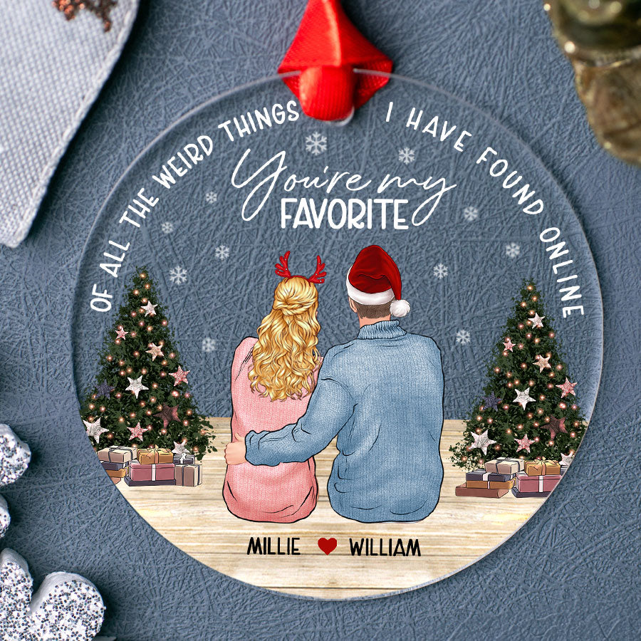 This Christmas Eve, capture the magic of the season with first christmas together ornament | custom couple christmas acrylic ornament | circle shape that celebrates your love and your furry friend. This unique ornament beautifully encapsulates those cherished moments spent together, making it a perfect addition to your holiday decorations. This gift is the perfect personalized Christmas ornaments for couples for the ones you love. You can choose from a wide range of Personalized Christmas Ornaments, each of which can be customized with the name or image of your favorite people.