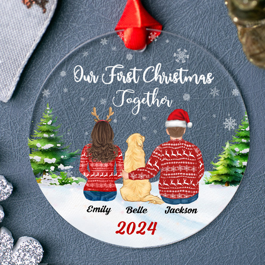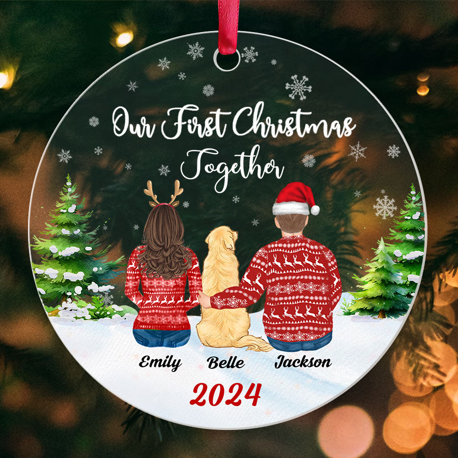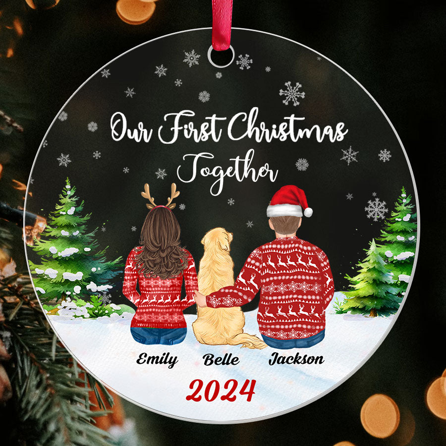 Our First Christmas Ornament | Personalized Couple Christmas Ornament With Dog | Circle Shape