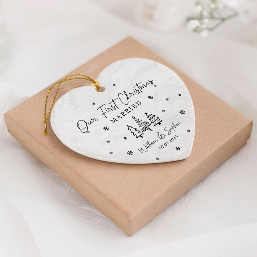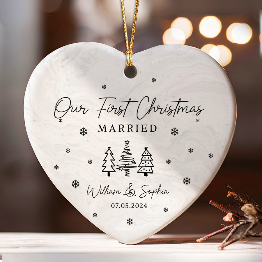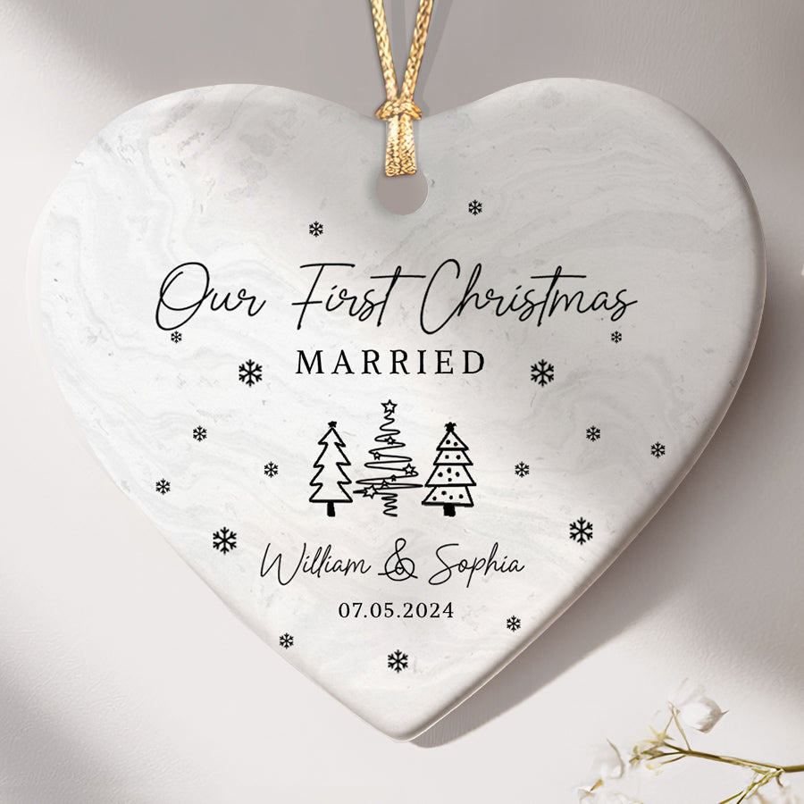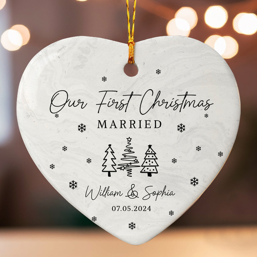 Custom Married Ornament | Heart Wedding Christmas Ornament