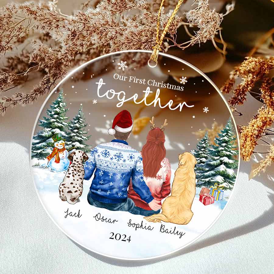 1st Christmas Married Ornament | Custom Name Christmas Acrylic Ornament With Pet Dog | Circle Shape