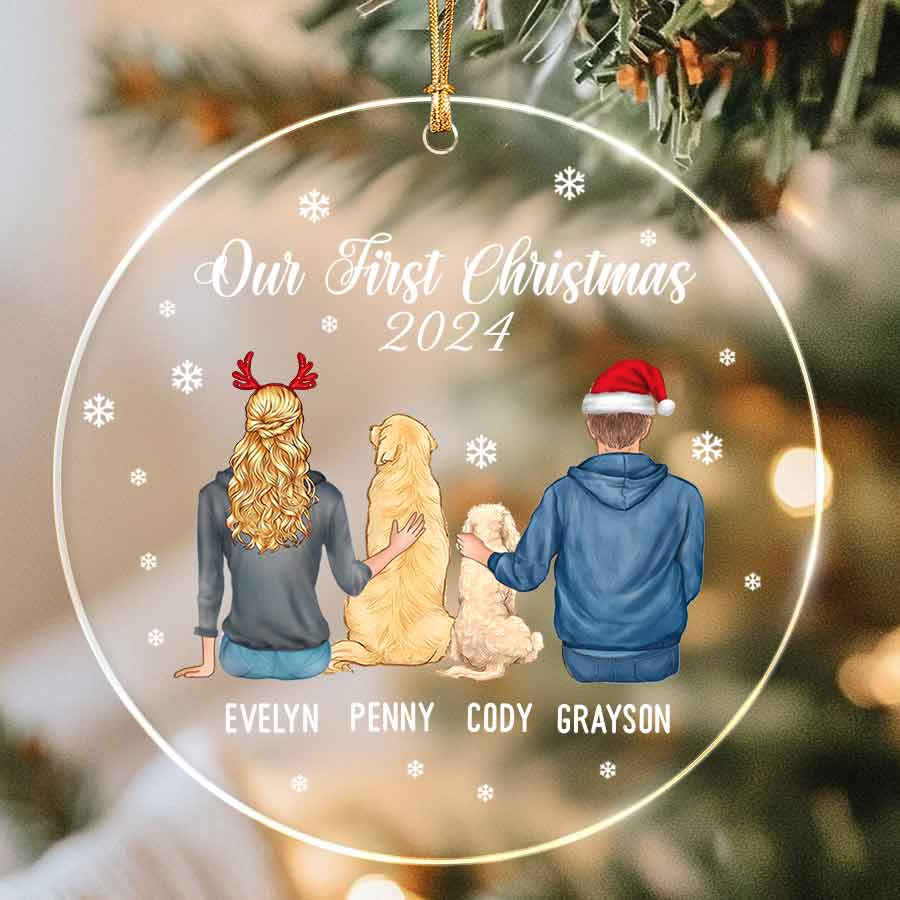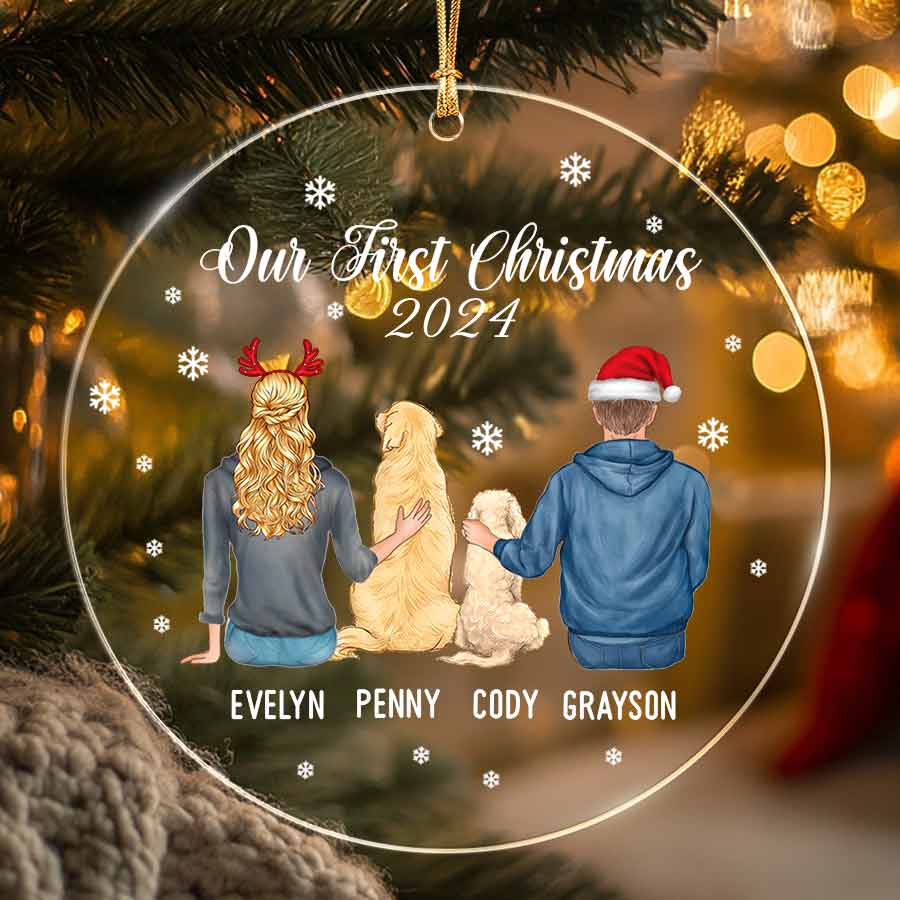1st Christmas Married Ornament | Custom Couple Ornament With Pet Dog | Circle Acrylic Ornament