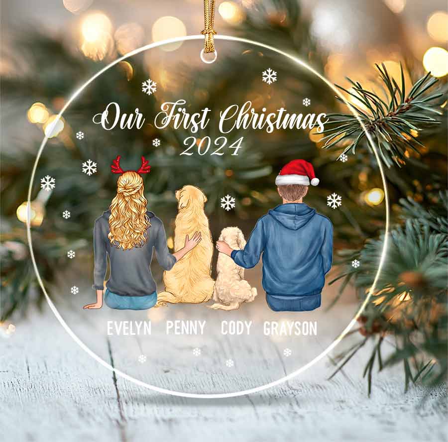 Celebrate your First Christmas together with our First Christmas Wedding Ornament | Custom Couple Ornament With Pet Dog | Circle Acrylic Ornament designed specifically for couples! This unique ornament beautifully encapsulates those cherished moments spent together, making it a perfect addition to your holiday decorations. This gift is the perfect personalized Christmas ornaments for couples for the ones you love. You can choose from a wide range of Personalized Christmas Ornaments, each of which can be customized with the name or image of your favorite people.