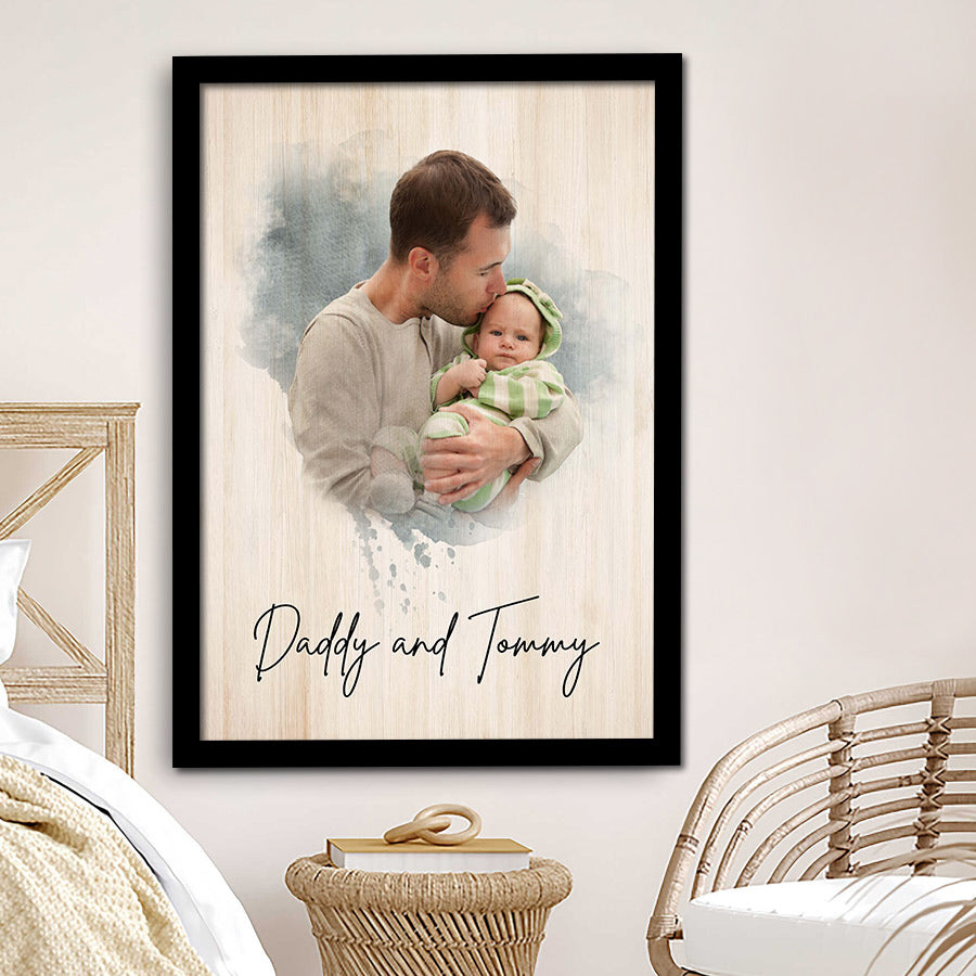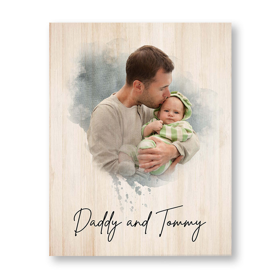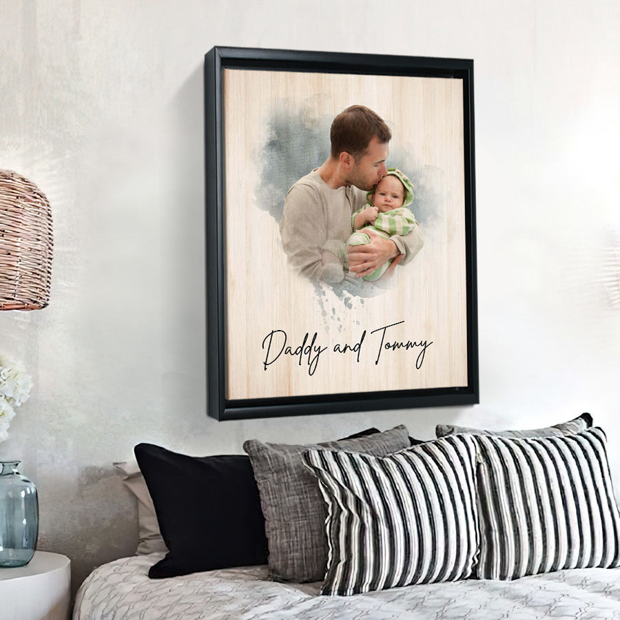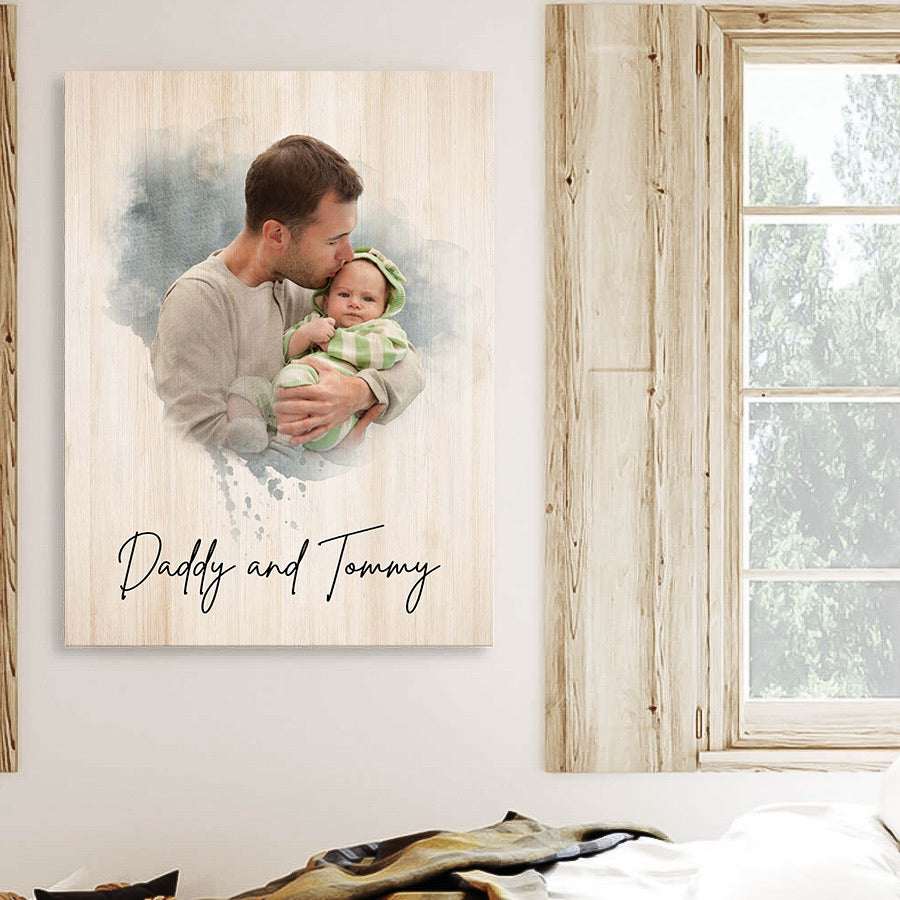 First Fathers Day Gifts | Custom Fathers Day Photo Canvas | Watercolor Portrait On Canvas