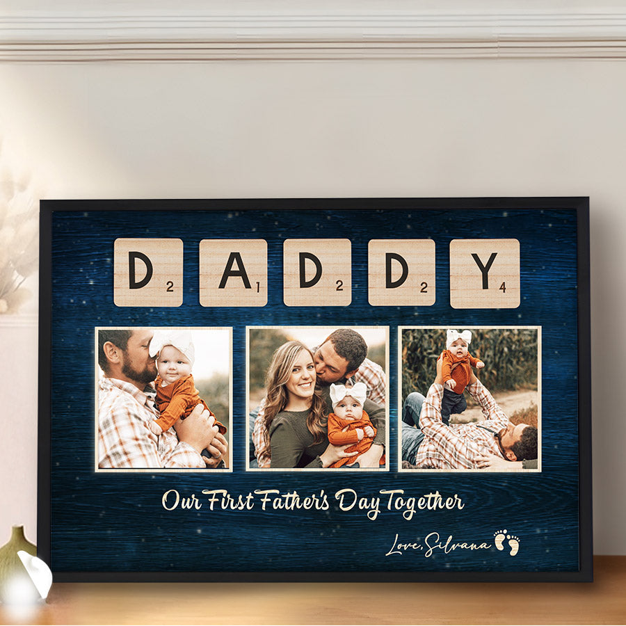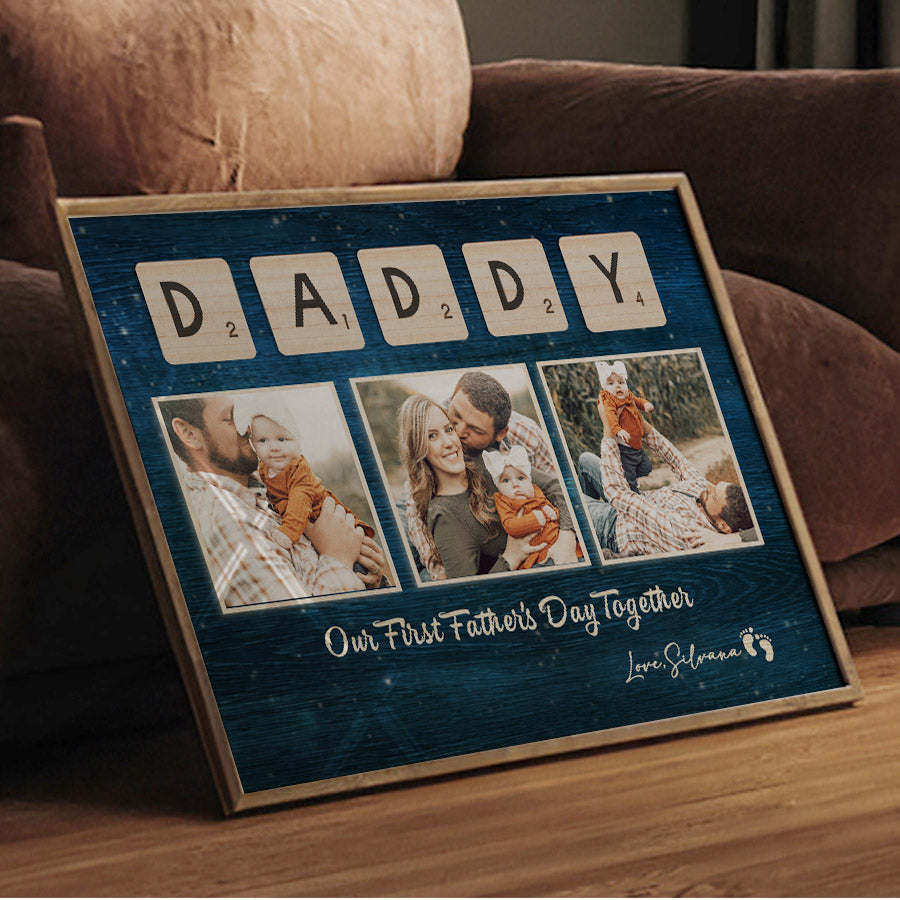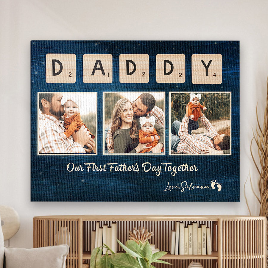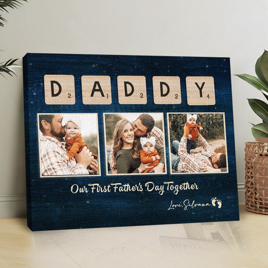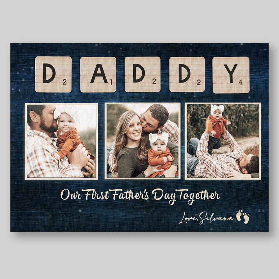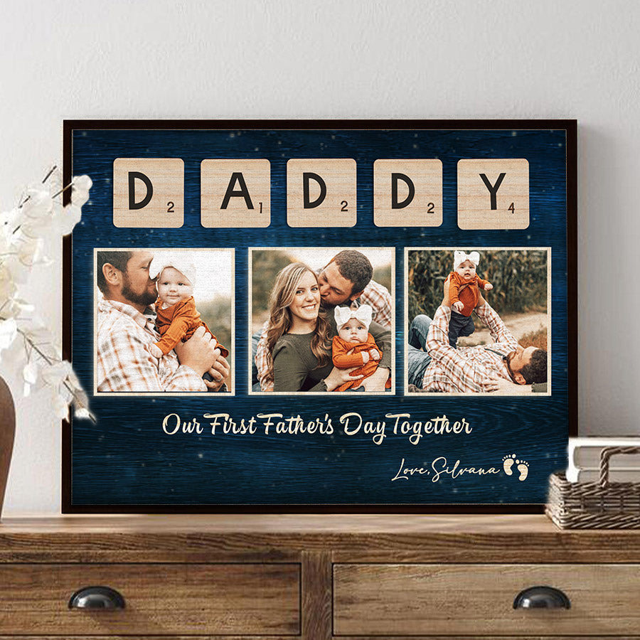 Treat the new dad in your life to first fathers day gift | 1st fathers day gift | our first fathers day together that commemorates the baby's arrival and his first Father's Day. Our personalized photo canvas is sure to bring a smile seeing little ones grow up before their eyes. Customize it FREE now - he will love displaying this treasured memory for many years to come.