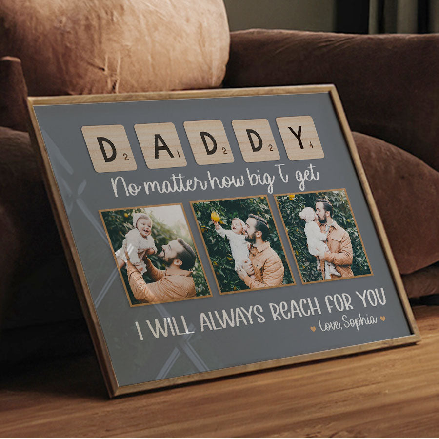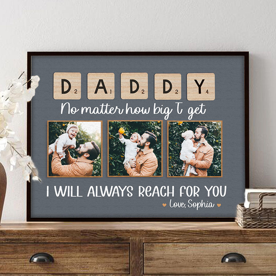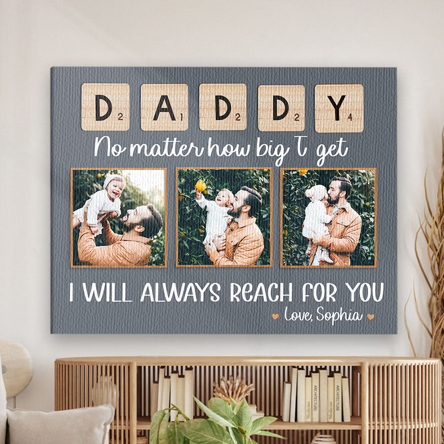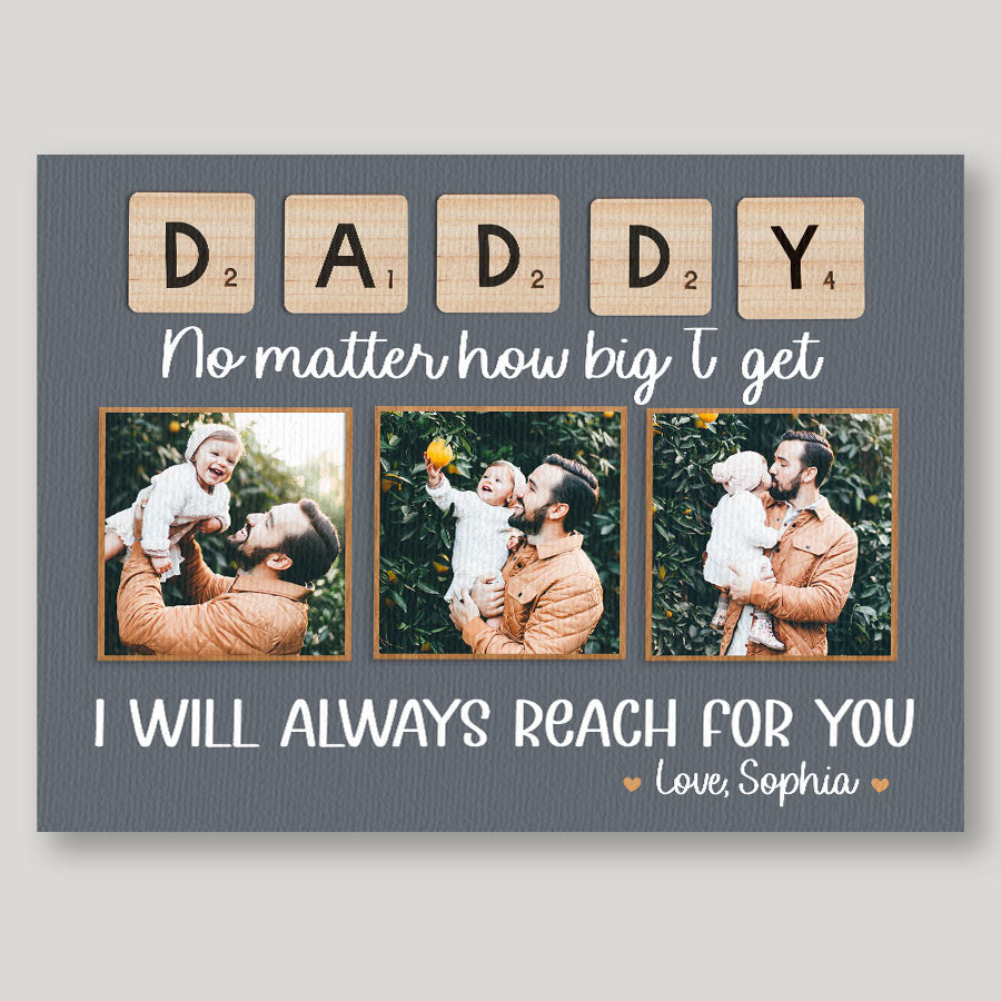 Treat the new dad in your life to first fathers day gift | first daddy day gift for fathers day that commemorates the baby's arrival and his first Father's Day. Our personalized photo canvas is sure to bring a smile seeing little ones grow up before their eyes. Customize it FREE now - he will love displaying this treasured memory for many years to come.