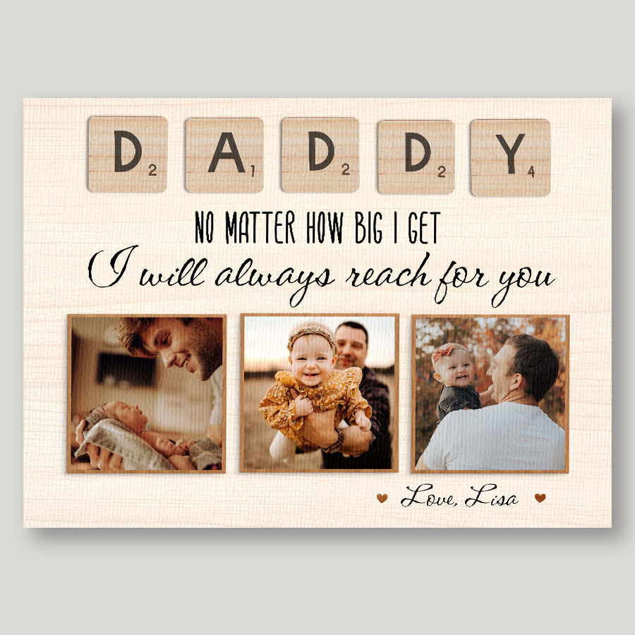 Treat the new dad in your life to first fathers day gift | first time fathers day gift that commemorates the baby's arrival and his first Father's Day. Our personalized photo canvas is sure to bring a smile seeing little ones grow up before their eyes. Customize it FREE now - he will love displaying this treasured memory for many years to come.